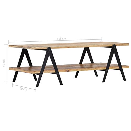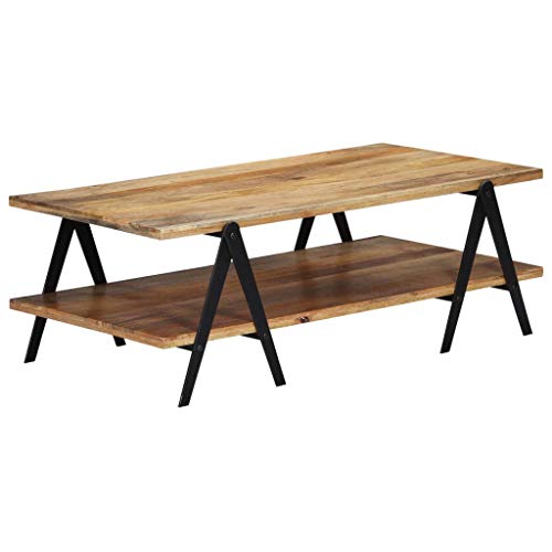 Coffee Table,Office Tea Desk,Living Room Center Table,Dining-Table,Rustic Table,Rectangle Table,With 2 Layers,Perfect for Library, and Resting Room, Office, 45.3"x23.6"x15.7" Solid Mango Wood