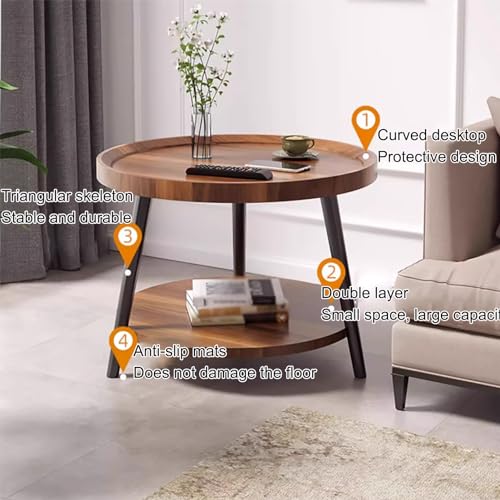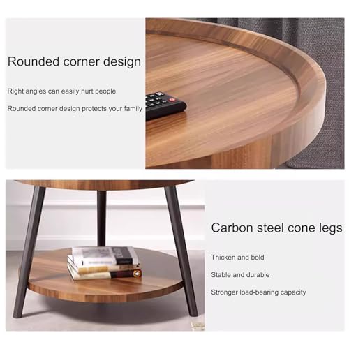 Round Coffee Table, Small Modern Coffee Table Simple Center Tables for Living Room, Living Room Table with 2-Tier Storage Shelf, for Home Office, Living Room (Color : White)