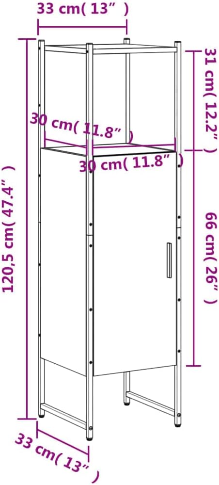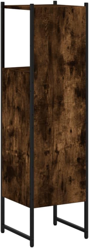 vidaXL Smoked Oak Bathroom Cabinet - Engineered Wood Storage Cupboard with Powder-Coated Steel - 13"x13"x47.4"