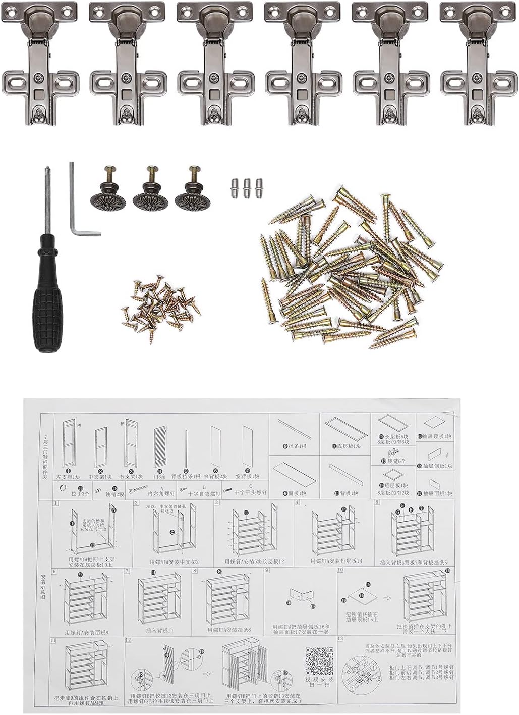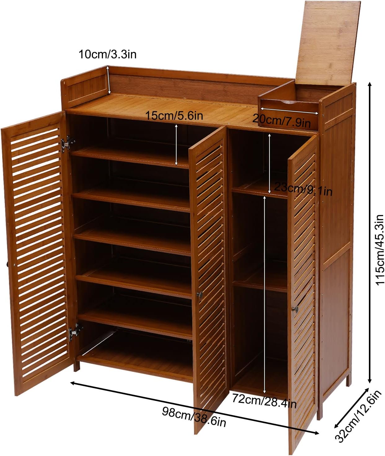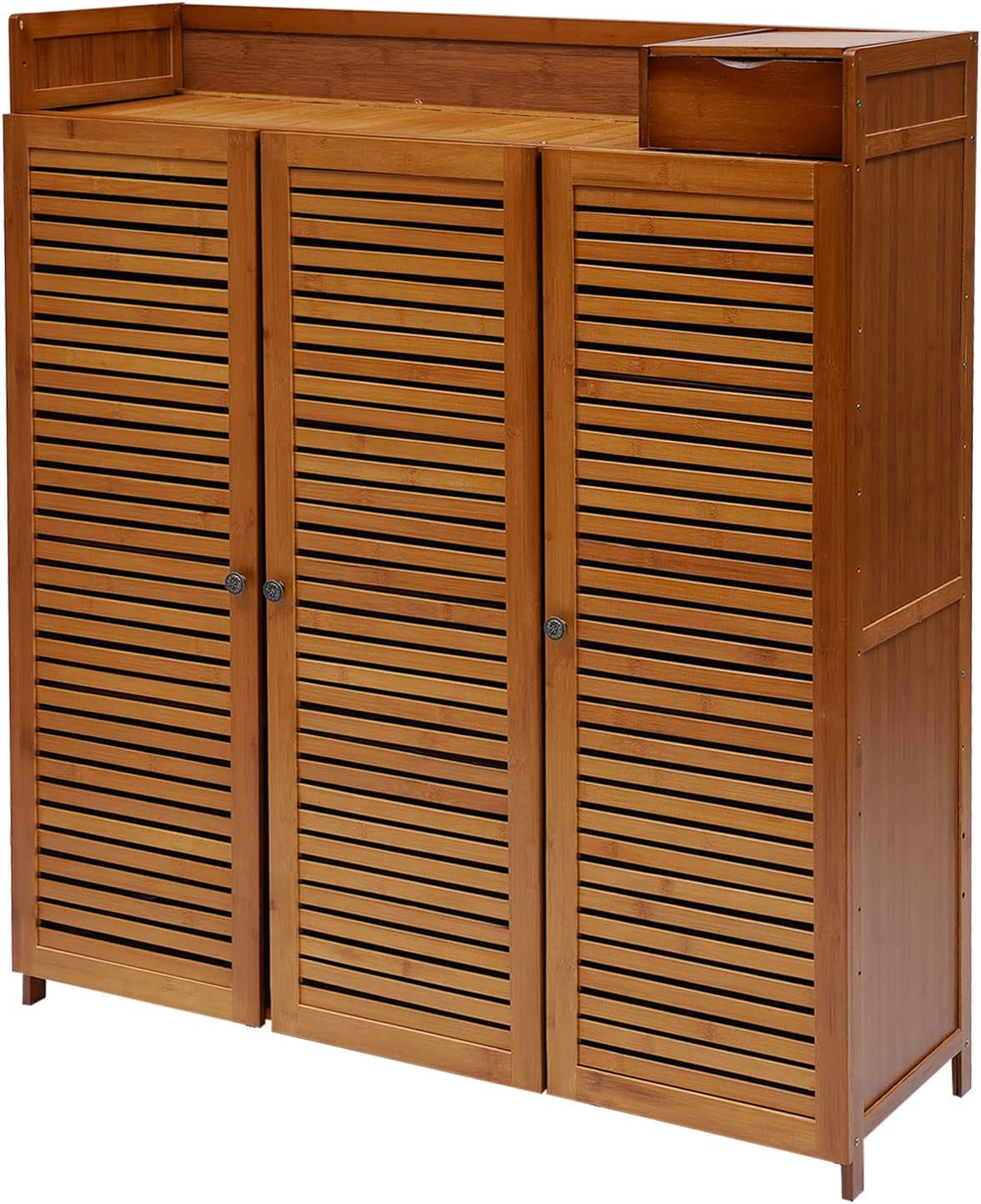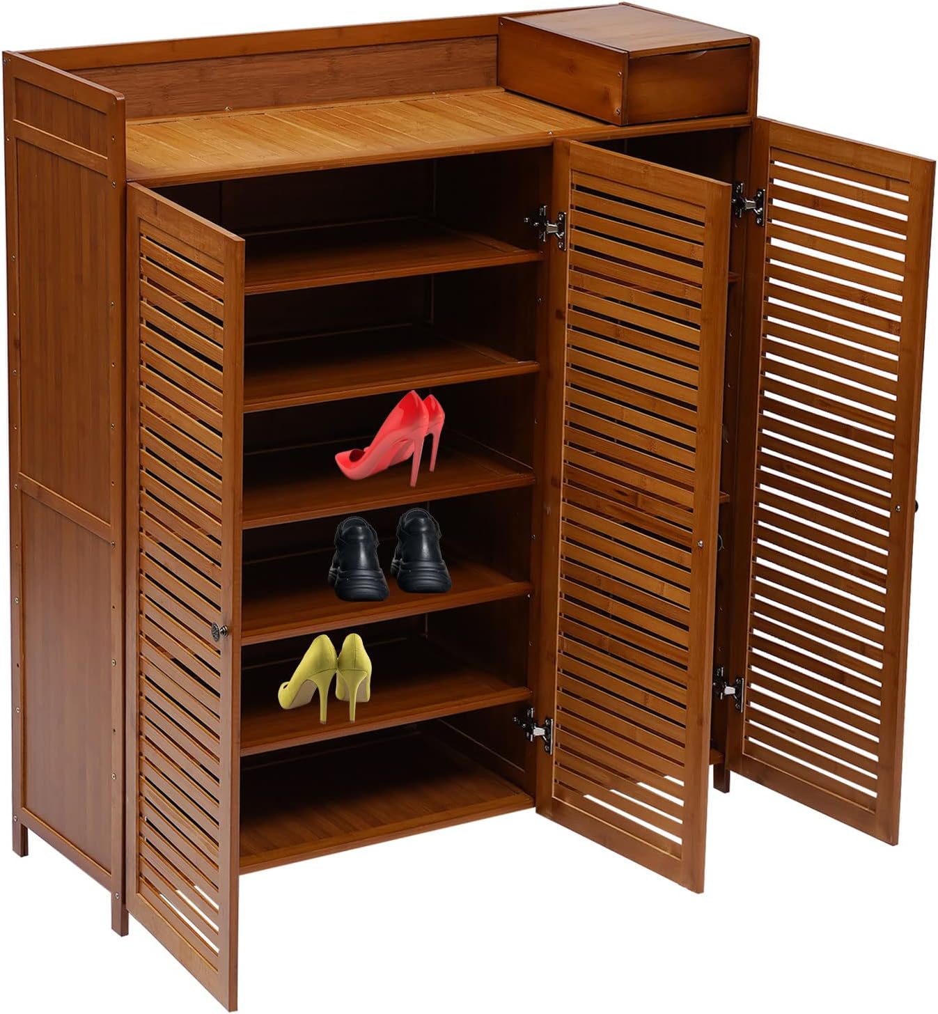 7-Tier Shoe Storage Rack with 3 Doors, Bamboo Rack Organizer Cabinet Wood Freestanding Shoe Storage Cabinet for Entryway Hallway Closet, 38.6" L×12.6" W×45.3" H