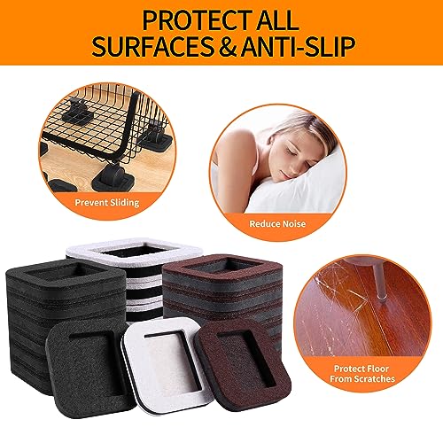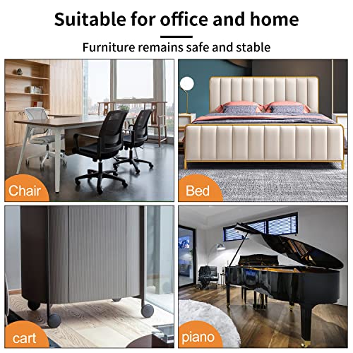 12 PCS Felt Furniture Coasters Caster Cups for Hardwood Floors, Felt Bottom Furniture Pads, Bed Office Chair Fridge Furniture Wheel Stopper to Prevent Sliding and Scratches (Black, L: 2.6" * W:1.8")