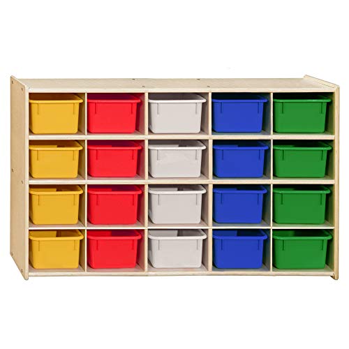 Contender 20 Cubby Storage Unit with Assorted Pastel Color Trays [Comes Fully Assembled], for Organizing Small Toys, Personal Supplies, Ideal for Day Care, Preschool