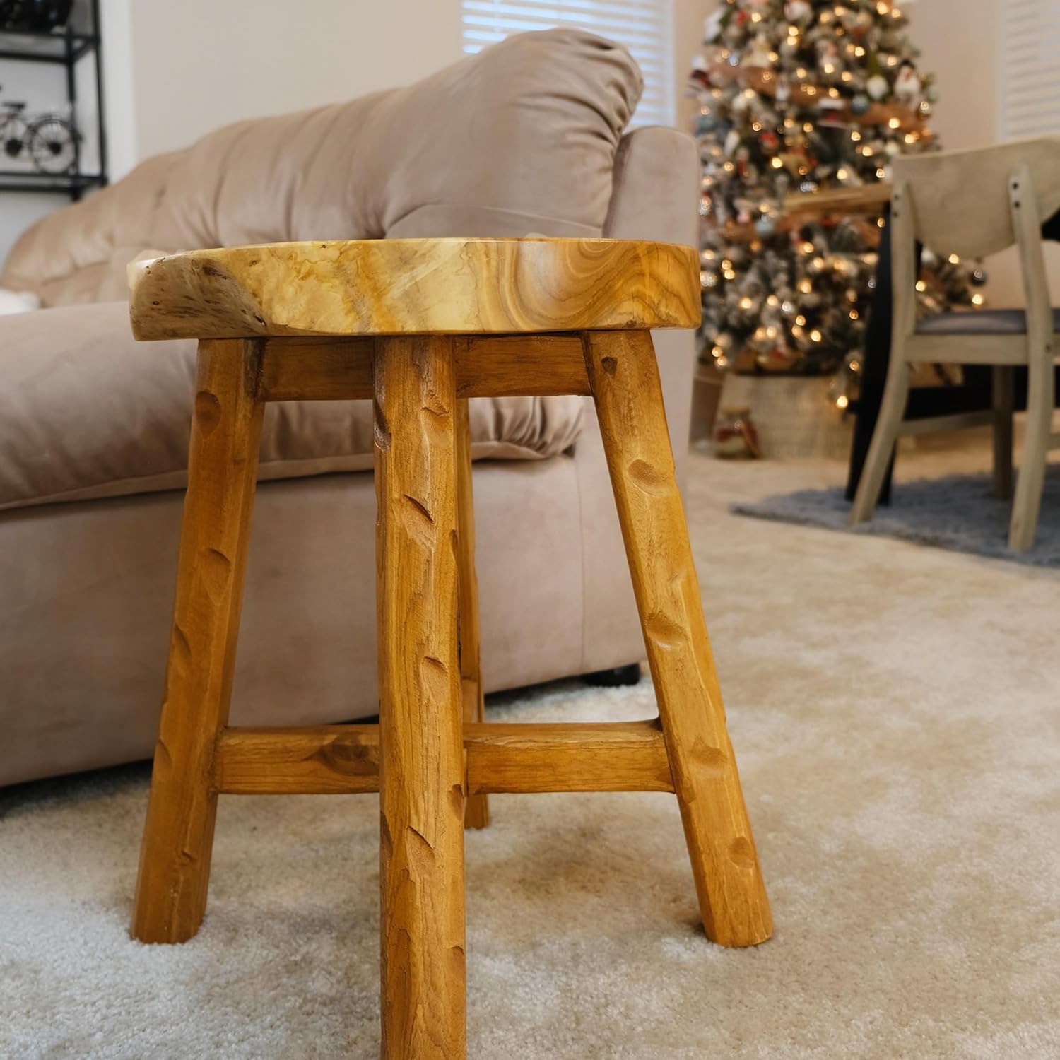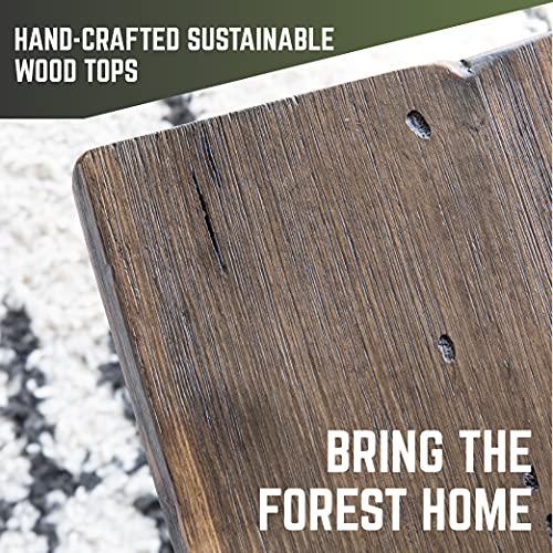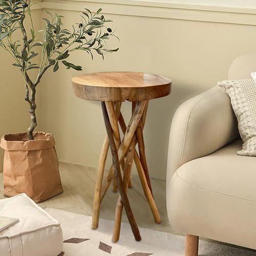 Wood Live Edge End Table 15.7" x 15.7" x 17.7"H Round Farmhouse Wooden Rustic Outdoor Patio Side Table Living Room Accent Coffee Table Bedroom Home Decor Stick Legs Plant Stand