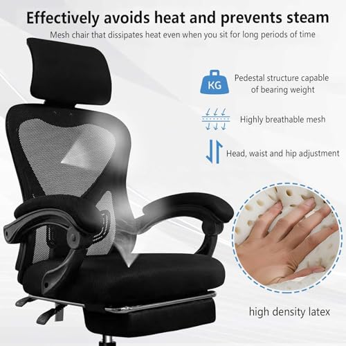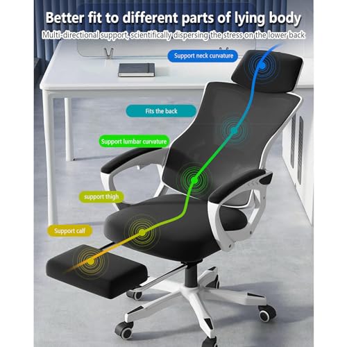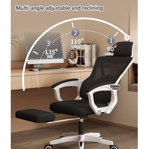 Gaming Chair with Footrest Headrest and Backrest 90-135 Adjustable,Wheels 360 Swivel Ergonomic Chair with Foot Rest Breathable Mesh,for Home/Study/Working,Black