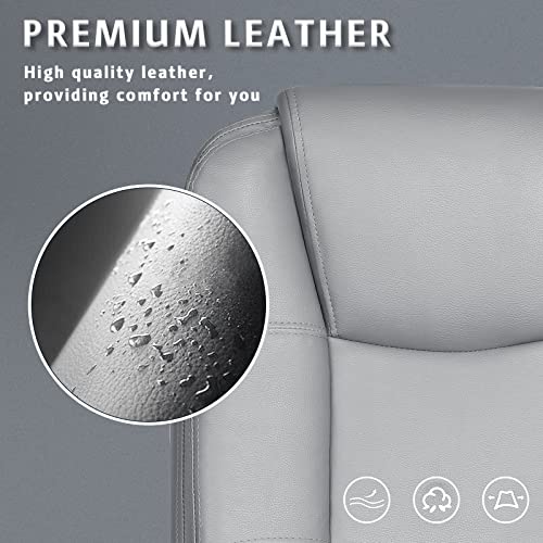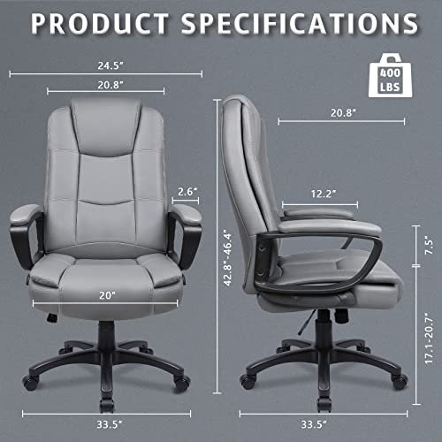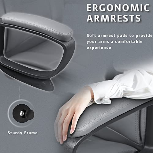 LEMBERI Office Desk Chair, Big and Tall Managerial Executive Chair, High Back Computer Chair, Ergonomic Adjustable Height PU Leather Chairs with Cushions Armrest for Long Time Sitting (Grey)