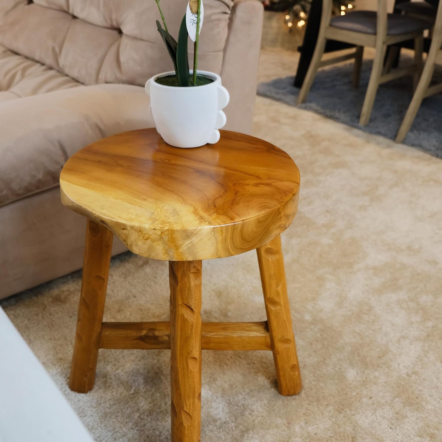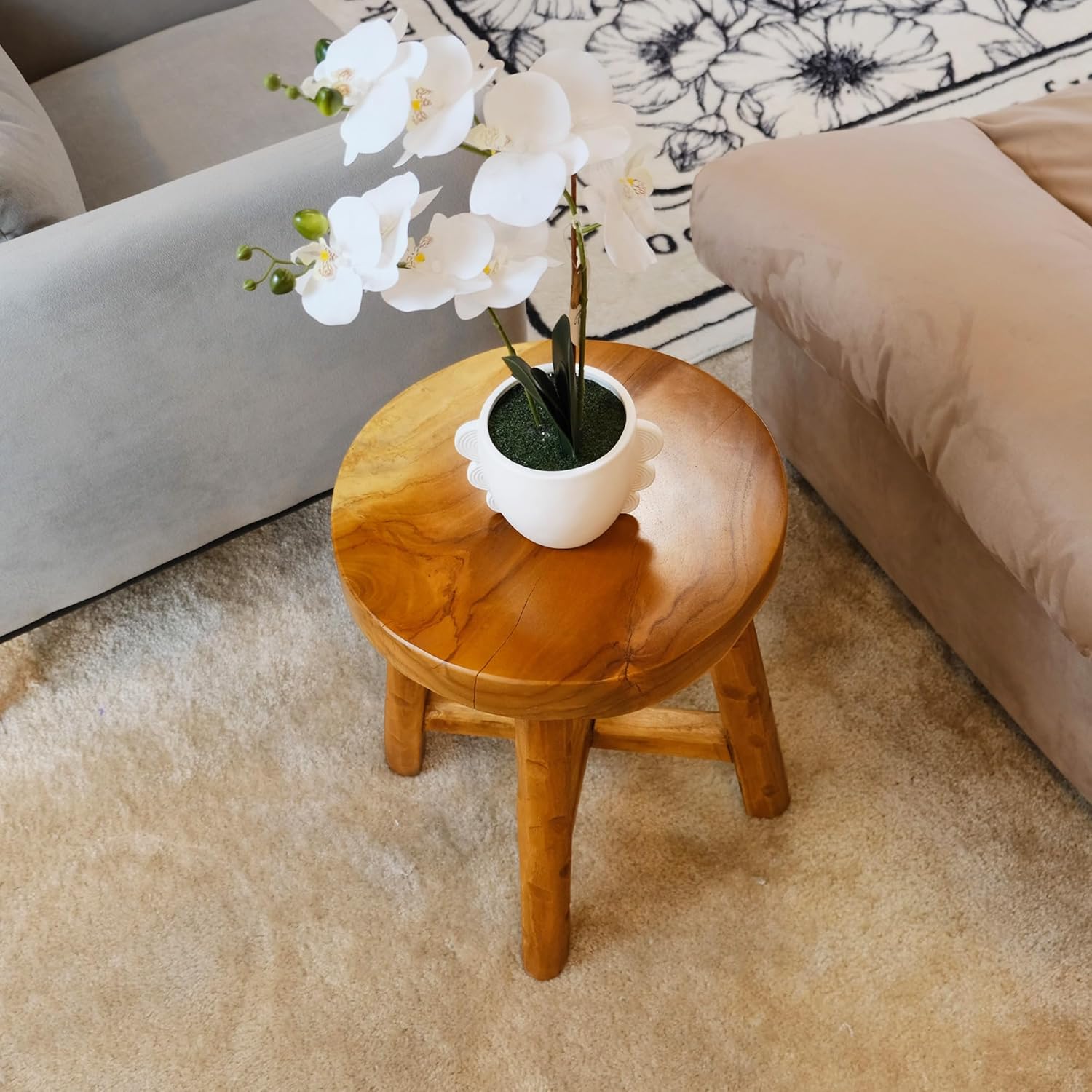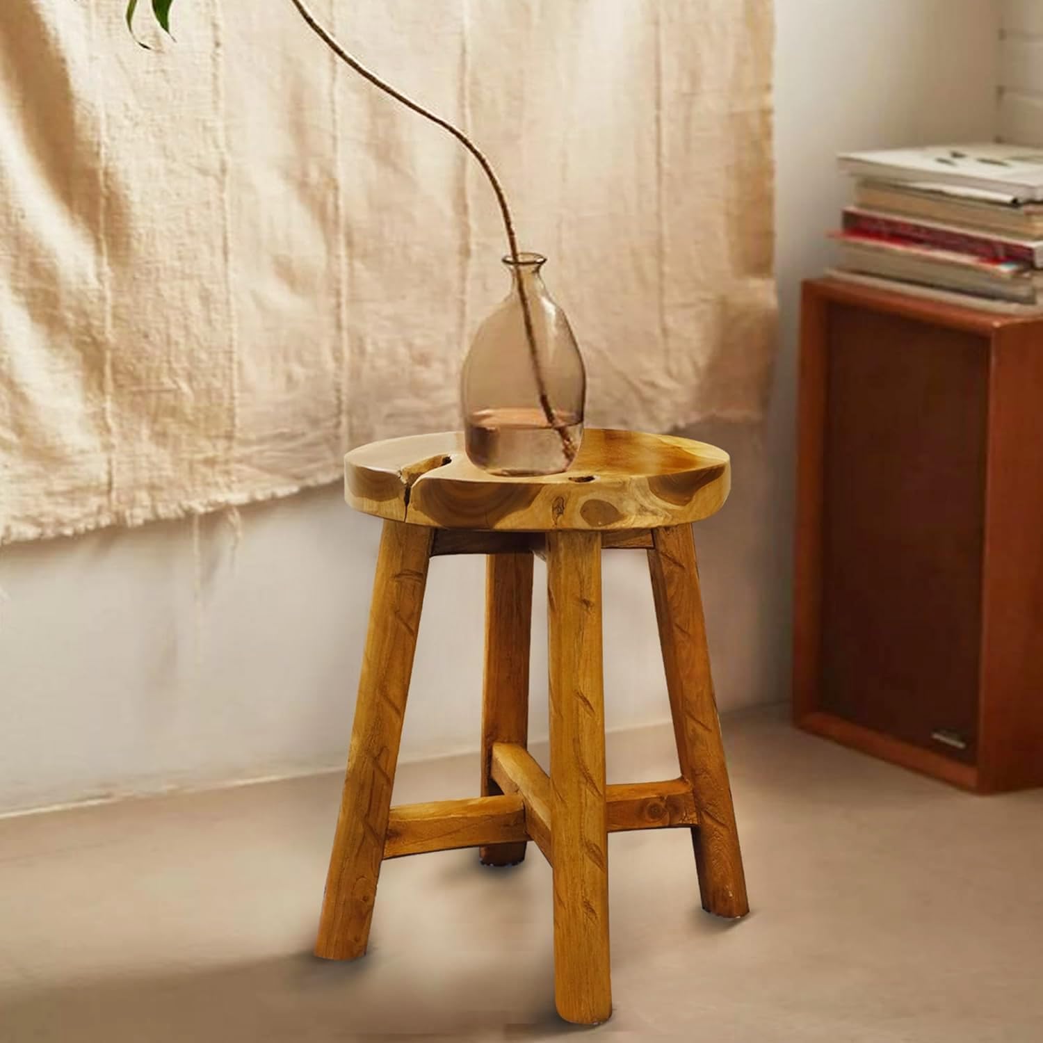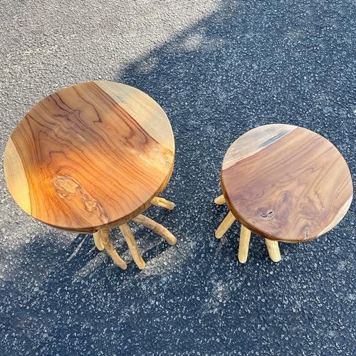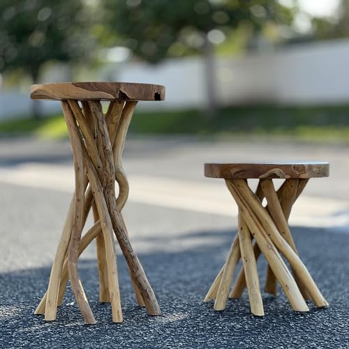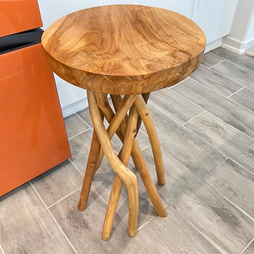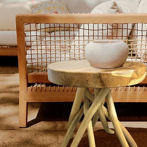 Teak Wood End Table 15.8" x 15.8" x 19.6"H Round Plant Stand Rustic Accent Coffee Table Outdoor Patio Side Table Couch Living Room Bedroom Farmhouse Vanity Sit Foot Stools