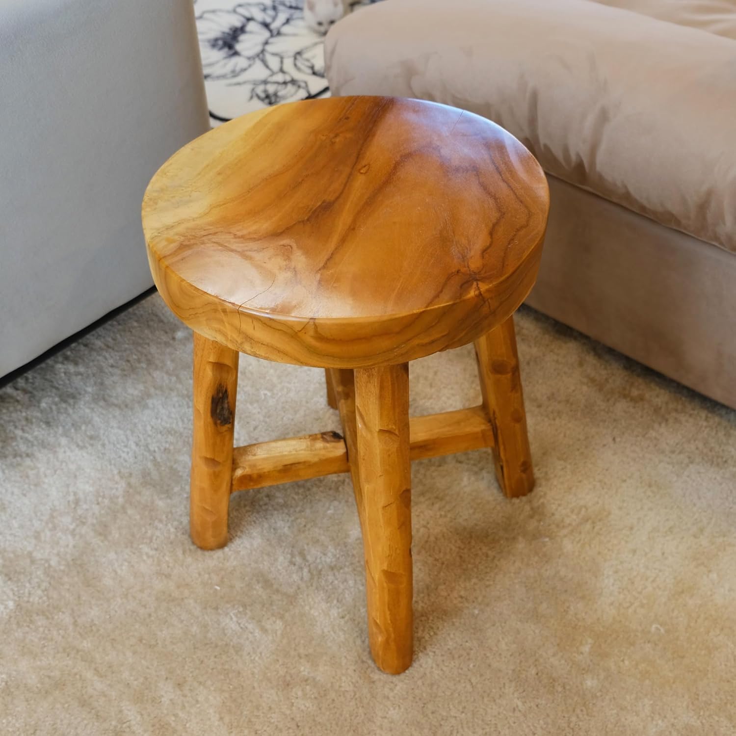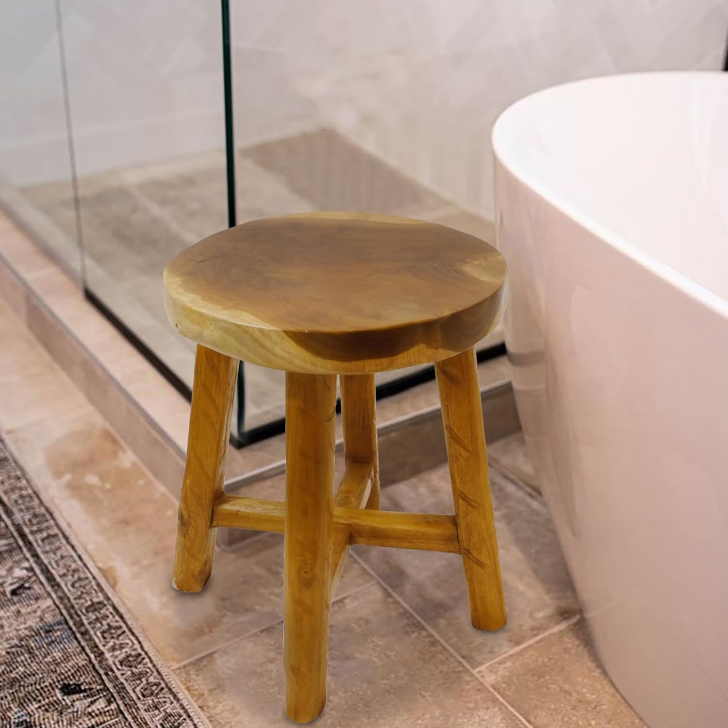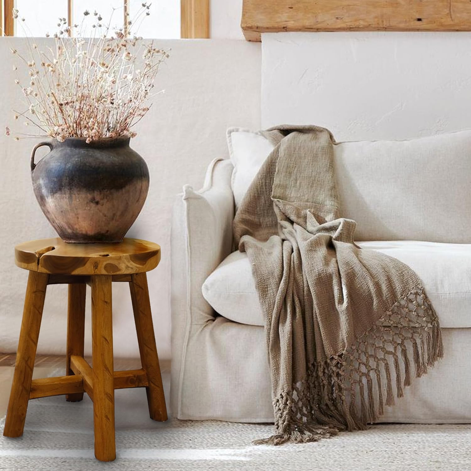 Teak Wood End Table 15.8" x 15.8" x 19.6"H Round Plant Stand Rustic Accent Coffee Table Outdoor Patio Side Table Couch Living Room Bedroom Farmhouse Vanity Sit Foot Stools