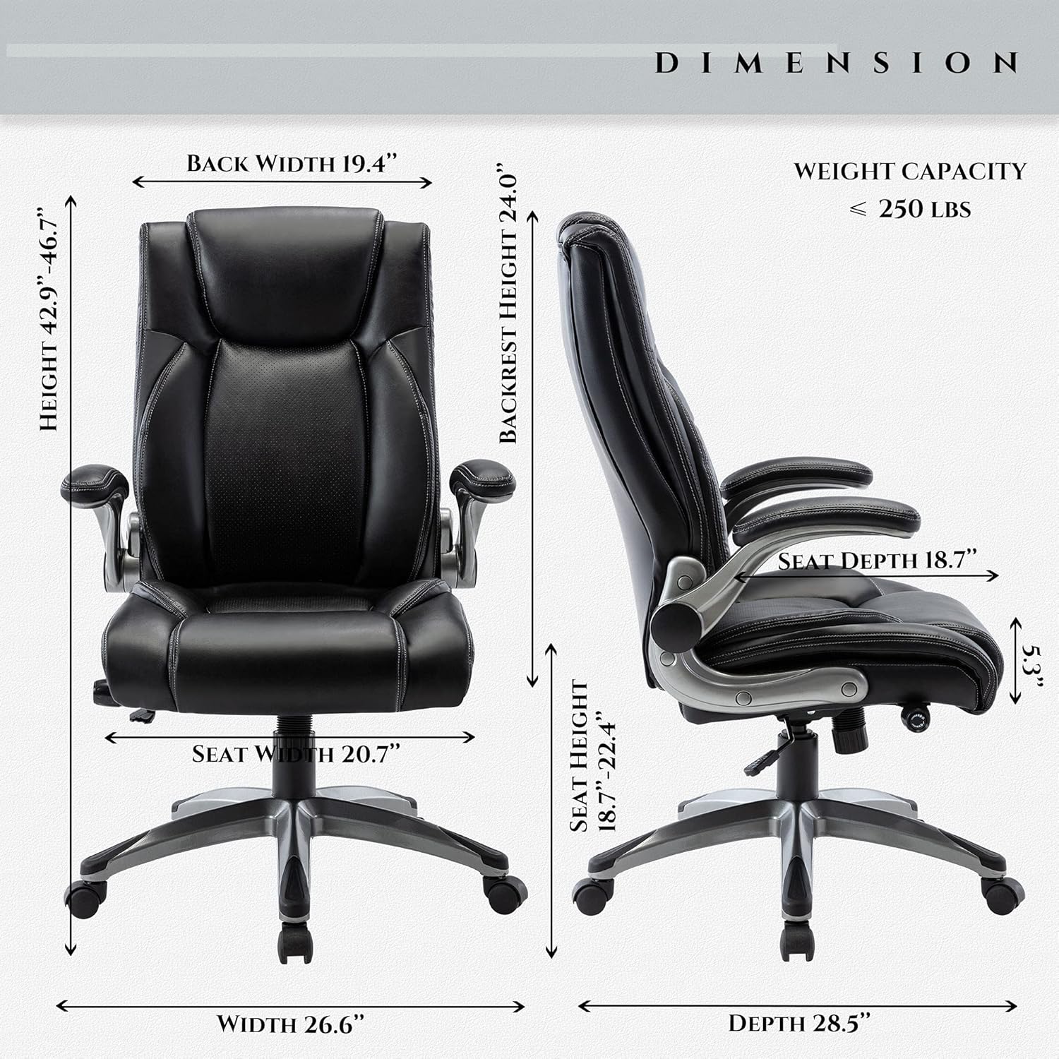 COLAMY Executive Office Ergonomic Chair with Thick Bonded Leather, Flip-up Armrests, High Back Adjustable Height and Tilt for Working, Study, Gaming