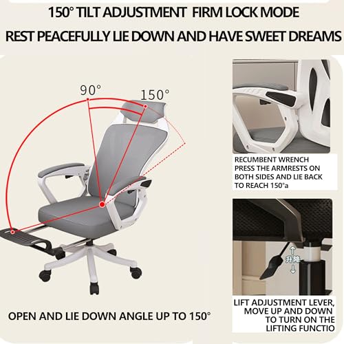 Office Gaming Computer Desk Chair Ergonomic Comfy Mesh Home Chair Reclining Feature,S-Shaped Back Support,Adjustable Footrest,Versatile Armrests for Study,Working,Executive,Living (Green)