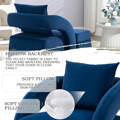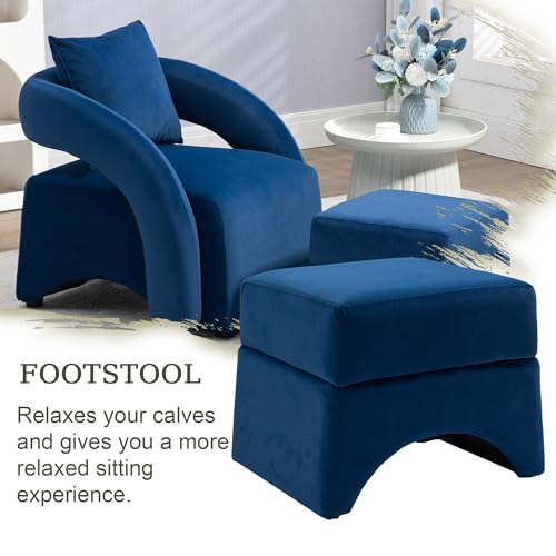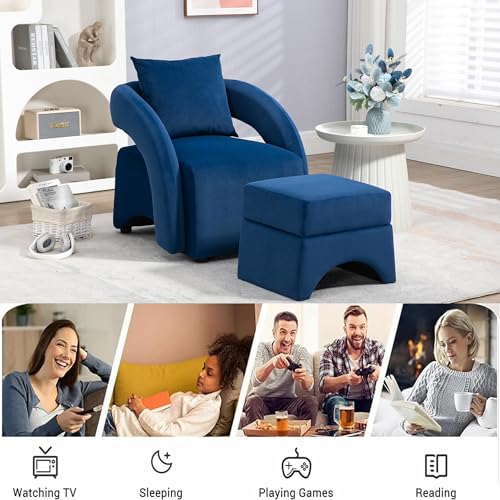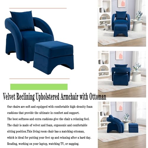 Modern Accent Chair with Ottoman,Mid Century Velvet Reclining Upholstered Armchair,Comfy Single Sofa Chair,Lazy Chair Reading Chair Leisure Sofa for Living Room,Bedroom,Reading Room (Navy)