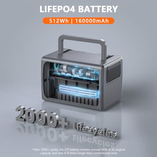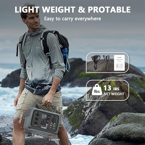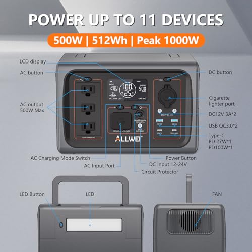 ALLWEI 500W LiFePO4 Solar Generator(Surge 1000W) with 100W Solar Panel, 512Wh Portable Power Station, UPS Function, 3 AC Outlets, Solar Power Generator for Outdoor RV Camping CPAP Backup Emergency