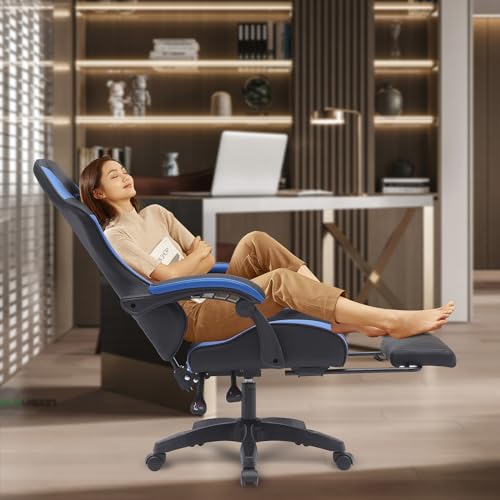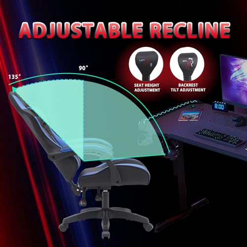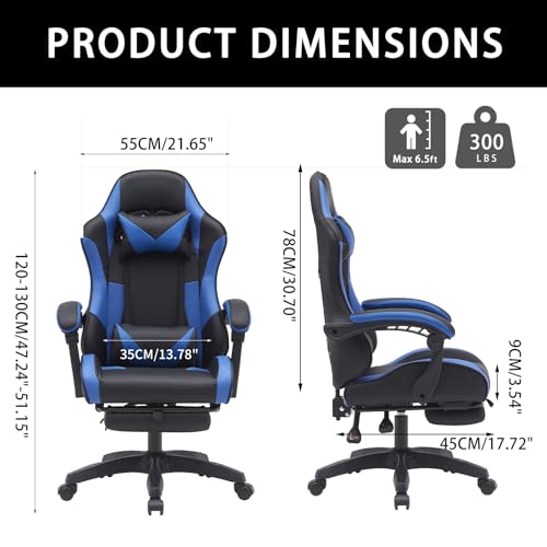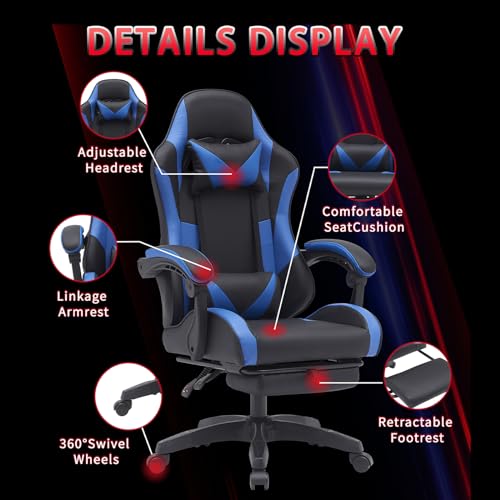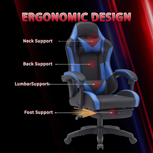 Gaming Chair, Computer Chair with Adjustable Headrest, Lumbar Support and Retractable Footrest, Big and Tall Ergonomic Office Chair for Working or Playing (Red)