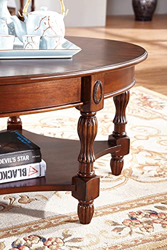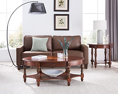 Vintage Wood Coffee Tables Set for Living Room, Oval Coffee Table & Oval End Table with Glass Top, Elegant Coffee Tables Set for Small Spaces, Entryway