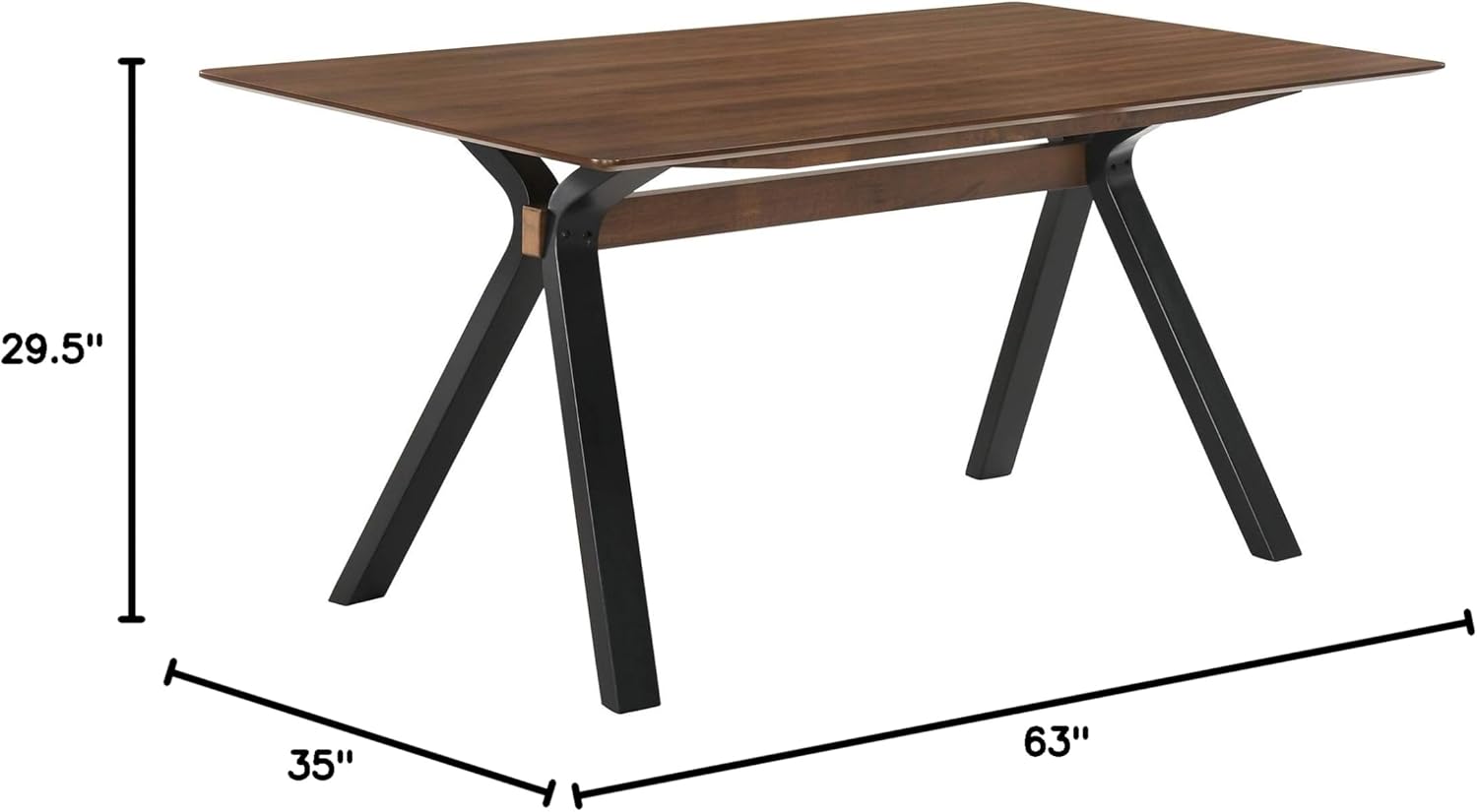 Armen Living Laredo 63" Mid-Century Modern Wood Dining Table Legs, Walnut/Black
