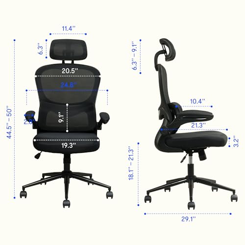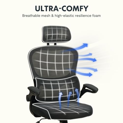 FLEXISPOT OC4 Pro Office Chair,Big and Tall Mesh Computer Desk Chair,Swivel Chair with Adjustable Lumbar Support,Headrest,Armrests and 360°Rotation for Home Office,Playing Guitar,Video Game,Black