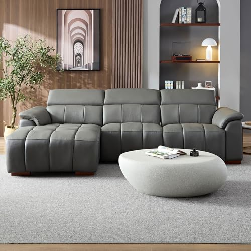 113.38"W Genuine Leather Sectional Sofa Couch with Power Recliner Chair for Living Room, DREAMODERN Convertible L-Shaped Sofa Couch with USB Charge Ports for Home Office - Left Hand Facing, Dark Gray