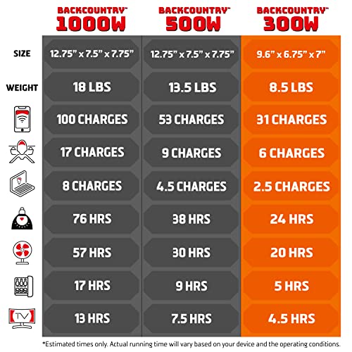 Backcountry Portable Power Stations, 300W, 500W or 1000W - Solar Generator Lithium Backup Battery with Power Outlet, USB, Wireless Charging for Camping and Indoor Home Use