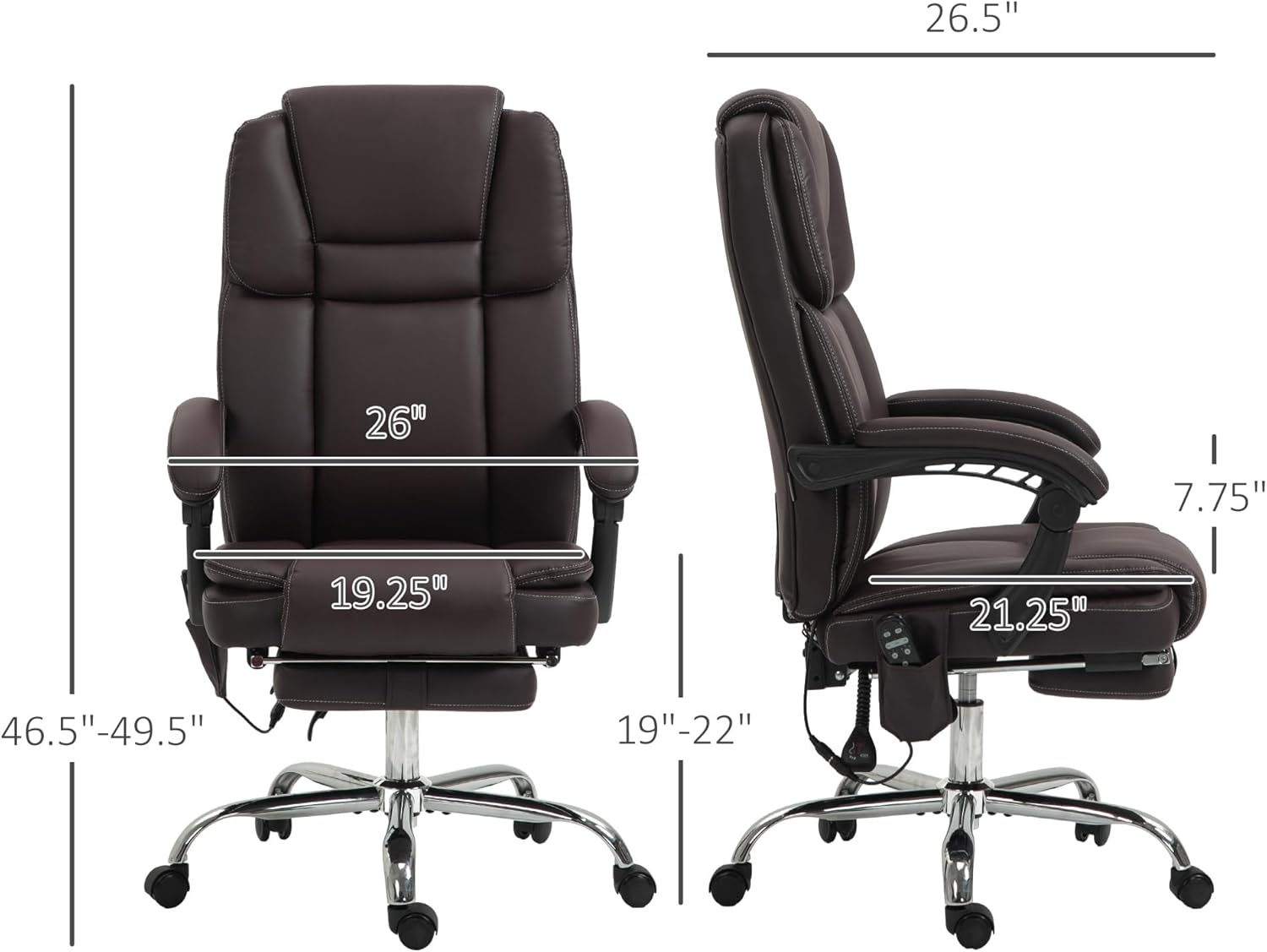 Vinsetto Massage Office Chair with 6 Vibration Points, Heated Reclining PU Leather Computer Chair with Adjustable Height, Footrest, Brown
