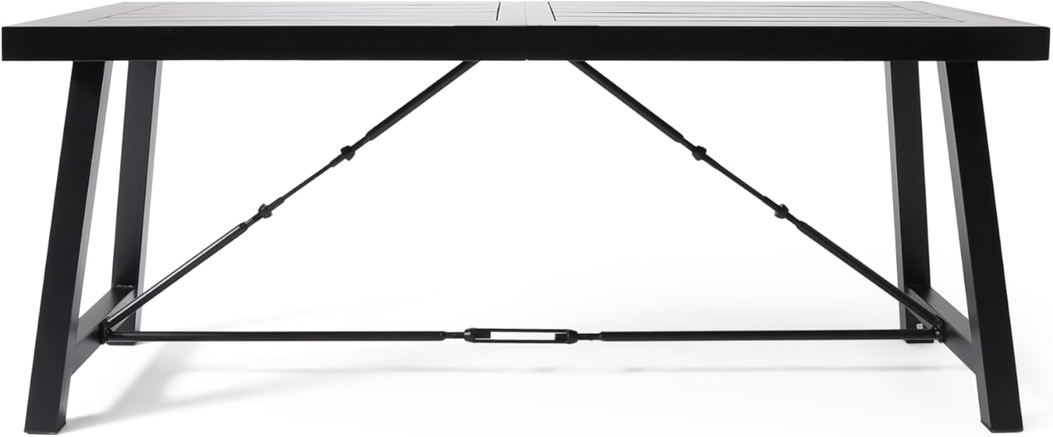 Homeros Solid Wood Top Metal Base Dining Table, 70" Industrial Style Table with Acacia Wood and Iron Frame, Black