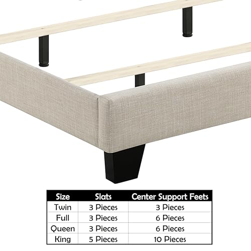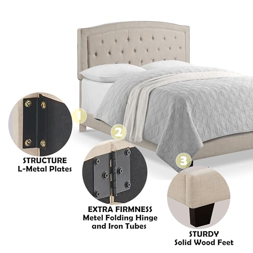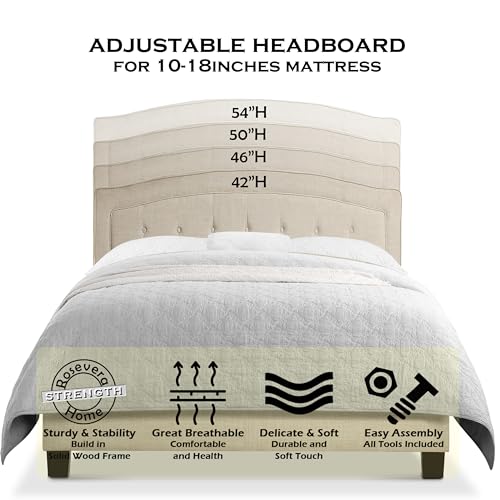Rosevera Kane Bed Frame with Adjustable Button-Tufted Headboard for Bedroom/Fabric Upholstered Bed and Footboard/Wood Slat Support Easy Assembly,King,Linen Gray