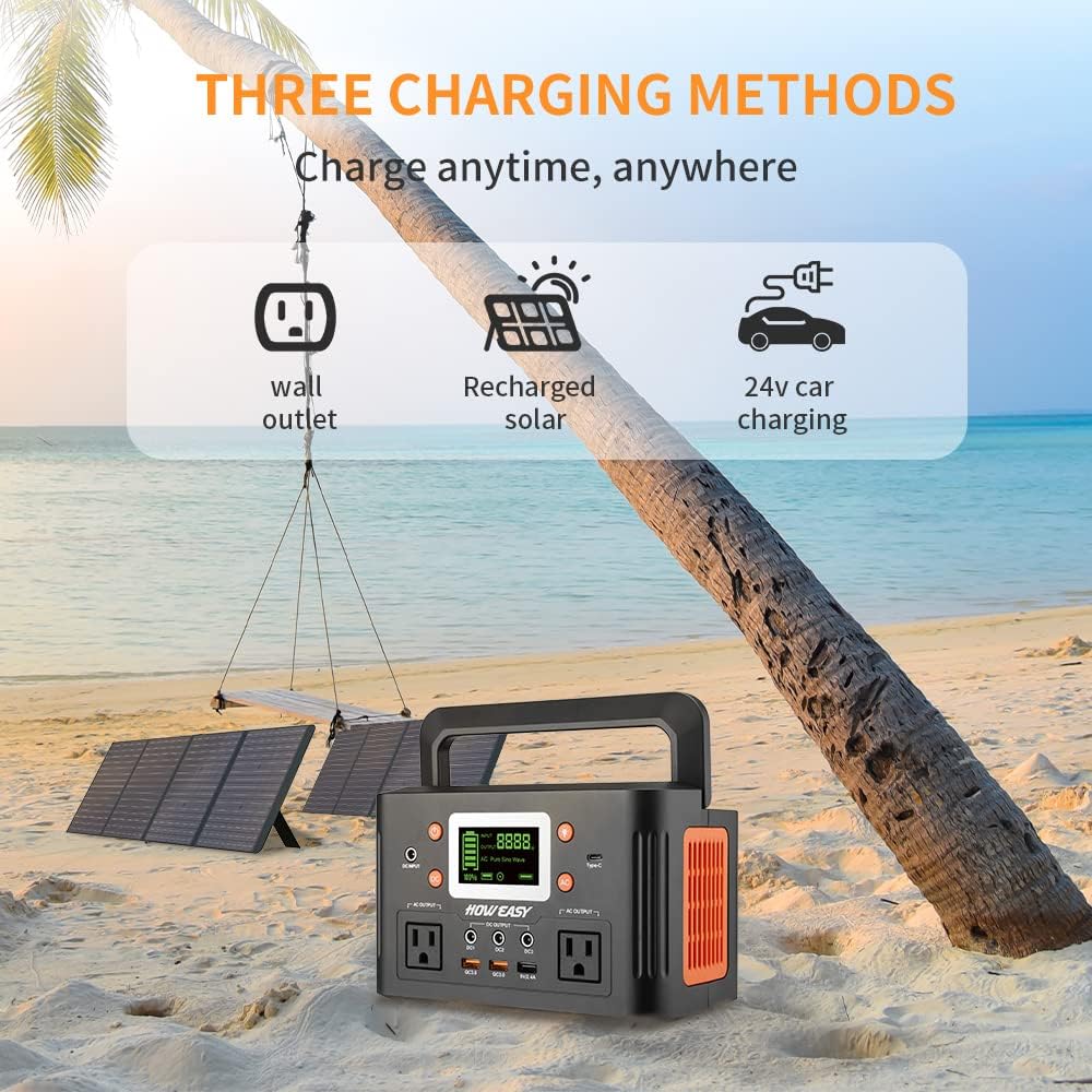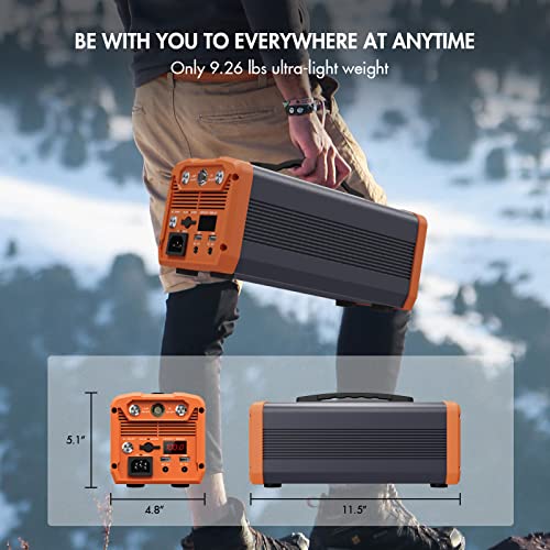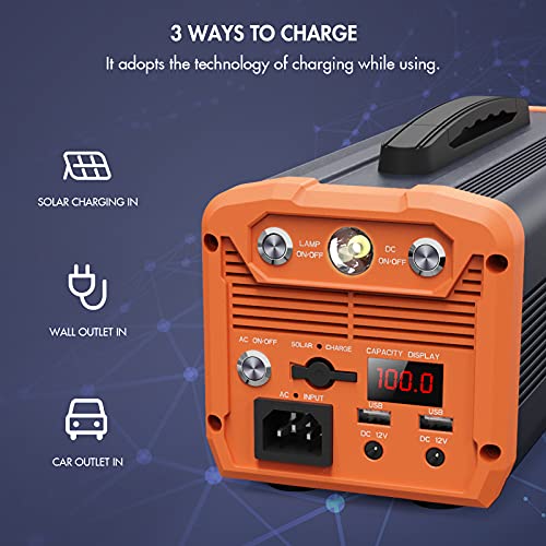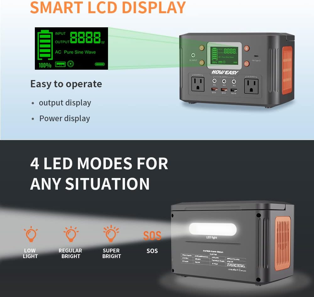 518Wh Portable Power Station ES-500,518Wh Outdoor Solar Generator Mobile Lithium Battery Pack with 110V/500W AC Outlet & LED Flashlight, Clean & Silent Solar Generator for Outdoor RV/Van Camping, Emergency, CPAP, Home