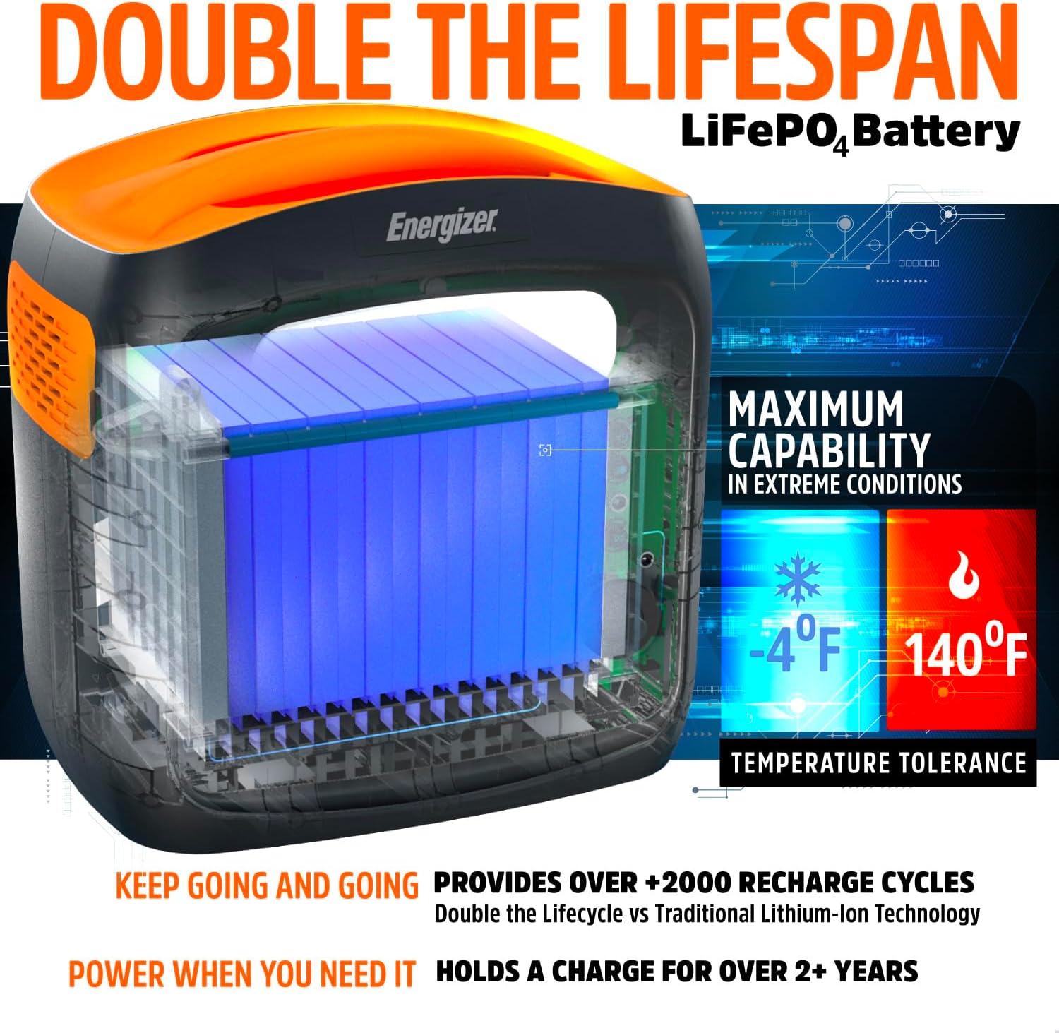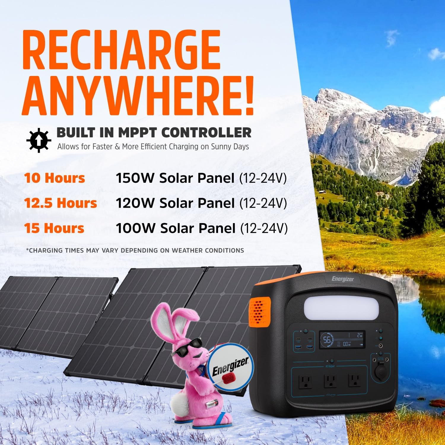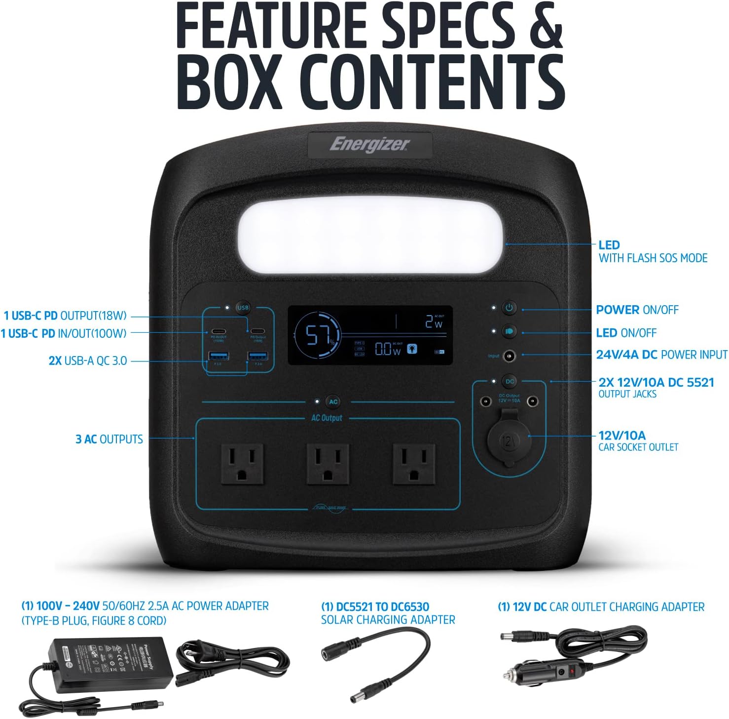 Energizer Portable Power Station Solar Generator 960W with LiFePO4 Battery, 110V/700W Pure Sine Wave AC Outlet, USB-C PD 100W, for Outdoor Use, Home Emergency, Power Outages, RV, Camping, CPAP