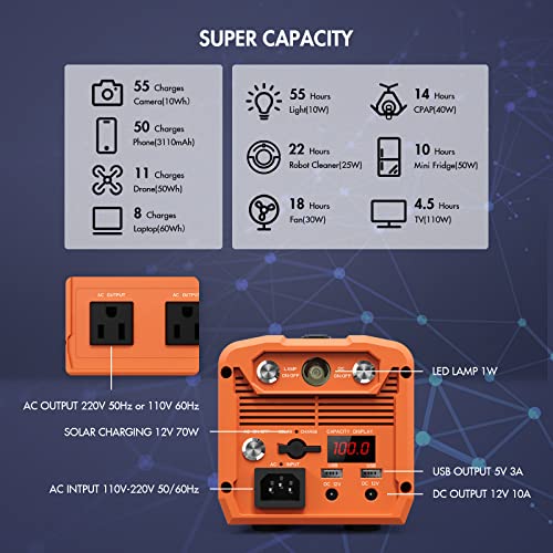 Solar Generator 300W Portable LiFePO4 Power Station 256Wh and Solar Panel 60W with 2 AC Outlet 110V/300W Solar Mobile Battery Packup for Outdoors Camping Hunting Home Emergency