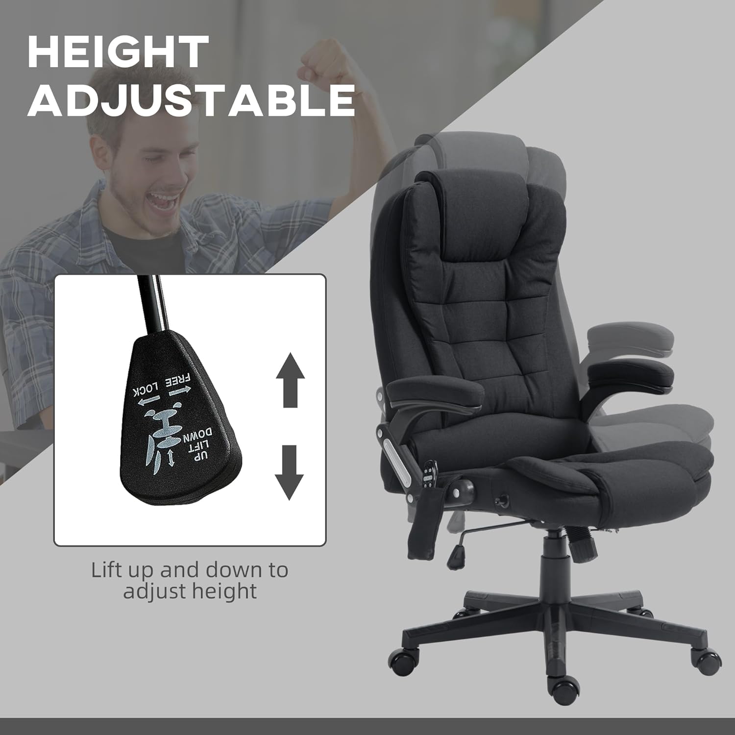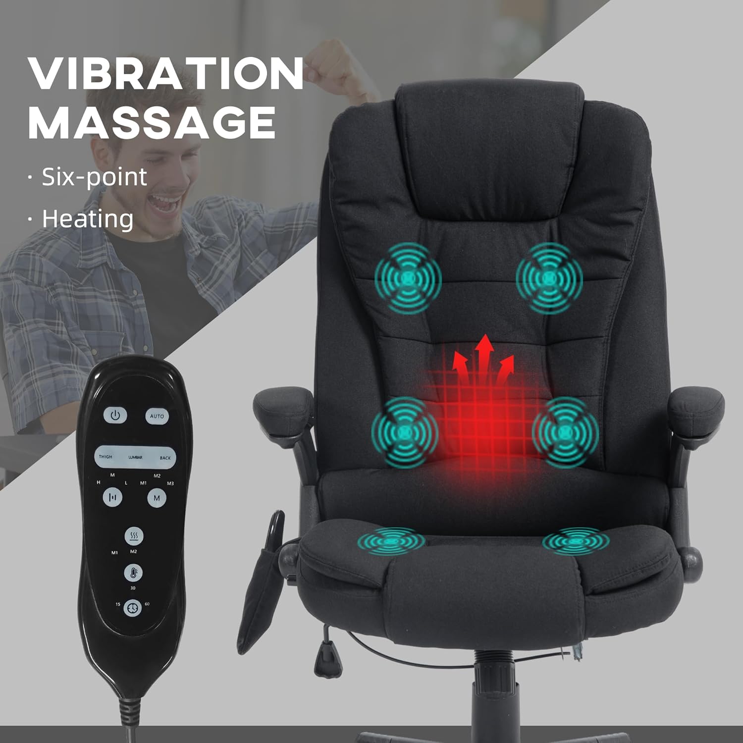 6-Point Vibration Massage Office Chair with Heat, Charcoal Gray