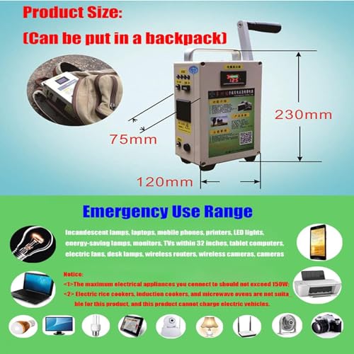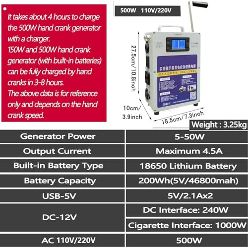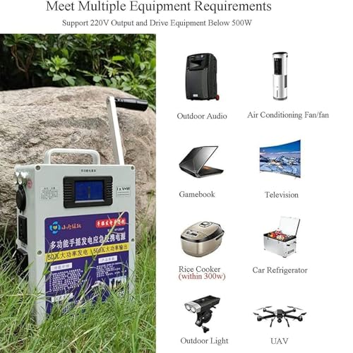 150W/500W Crank Generator, Camping Hand Crank Generator For Mobile Phone, Portable Power Station With Outlets Dc/Usb Supply,500W