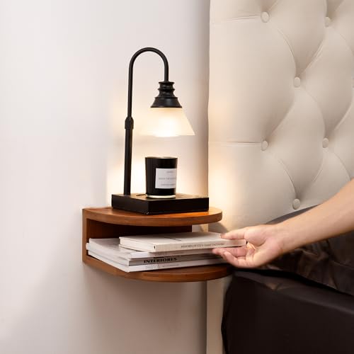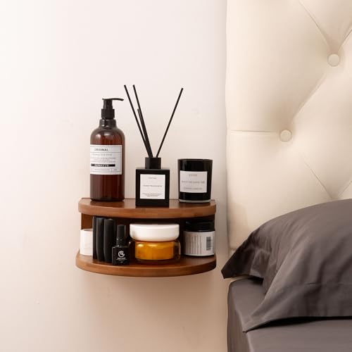 Floating Nightstand Walnut Wood Wooden Shelf Wall Mount - Stylish & Minimalistic Bedside Shelf Hanging Storage Phone Rest Side Table for Bedroom Living Room Office Home Decor (Brown)