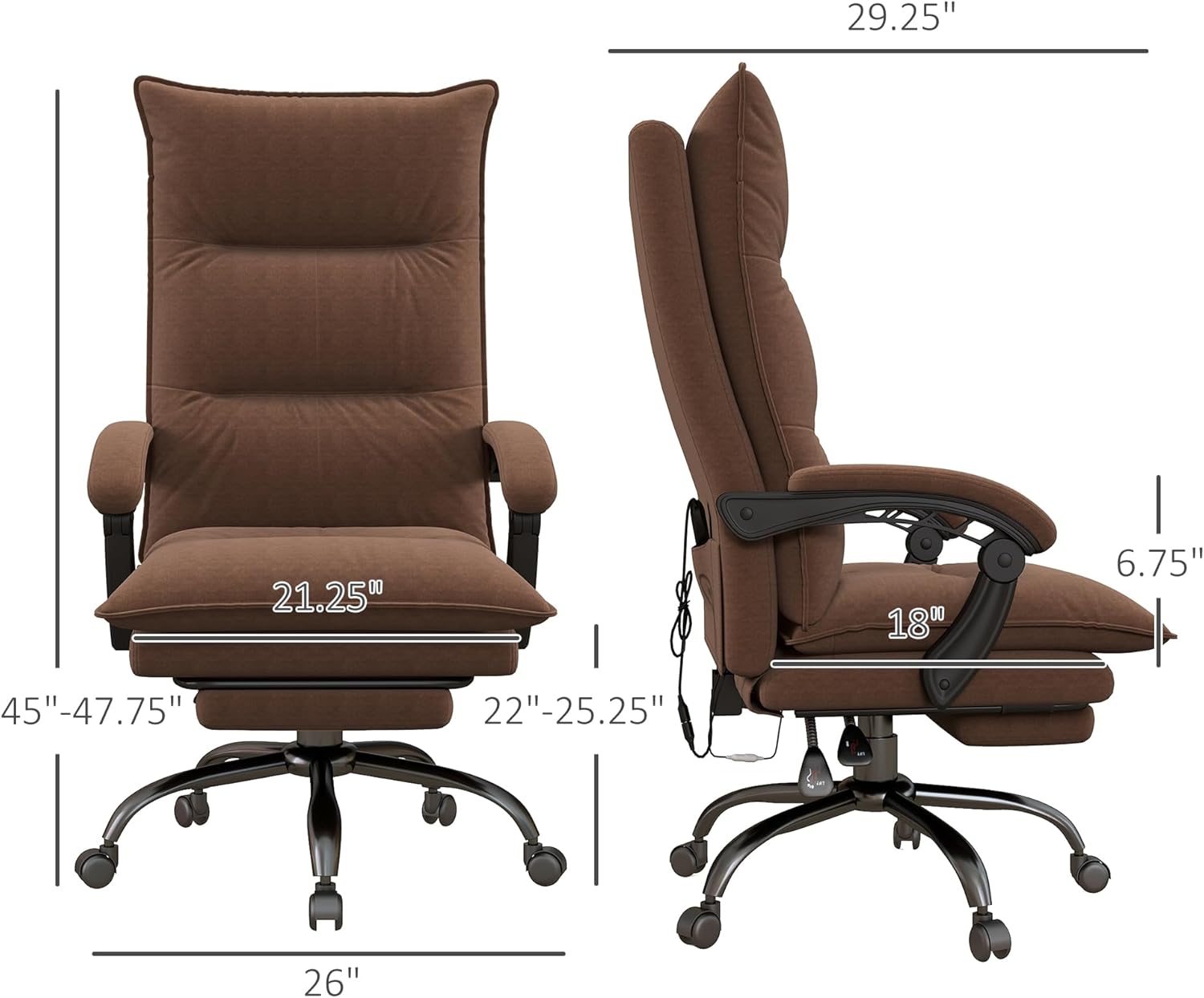 Executive Massage Office Chair with 6 Vibration Points, Microfiber Computer Desk Chair, Heated Reclining Chair with Footrest, Armrest, Double Padding, Brown