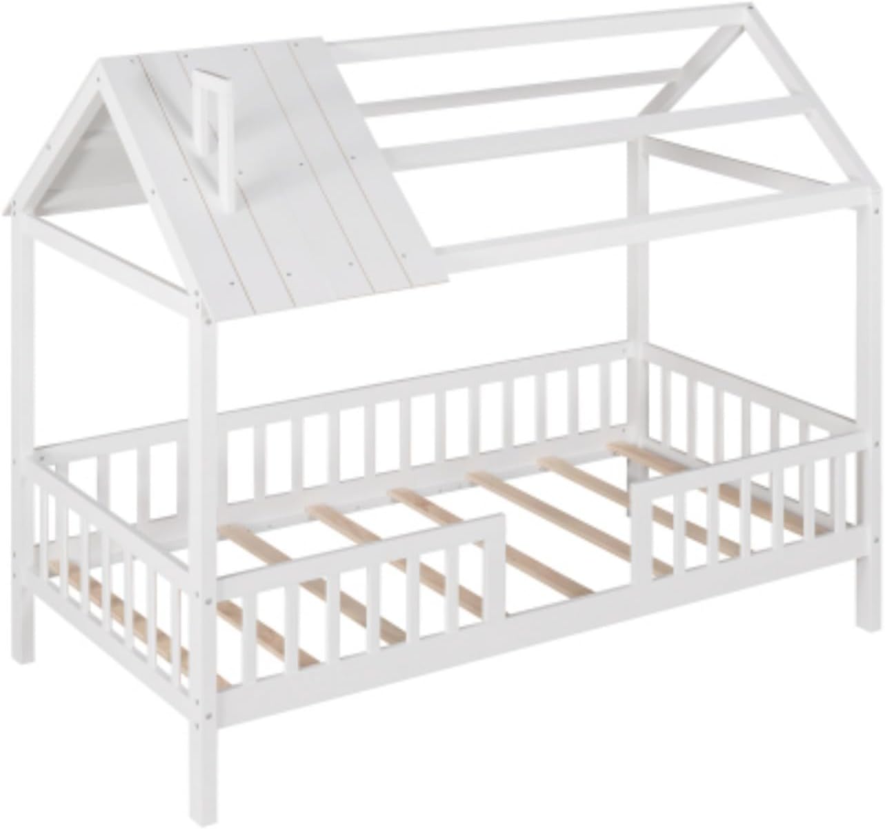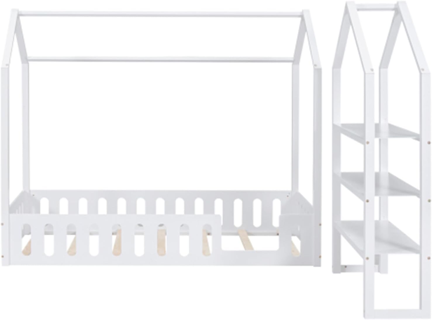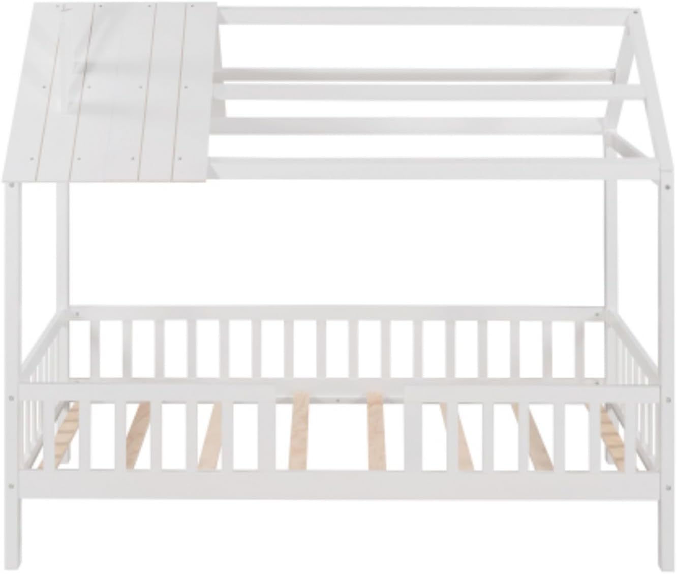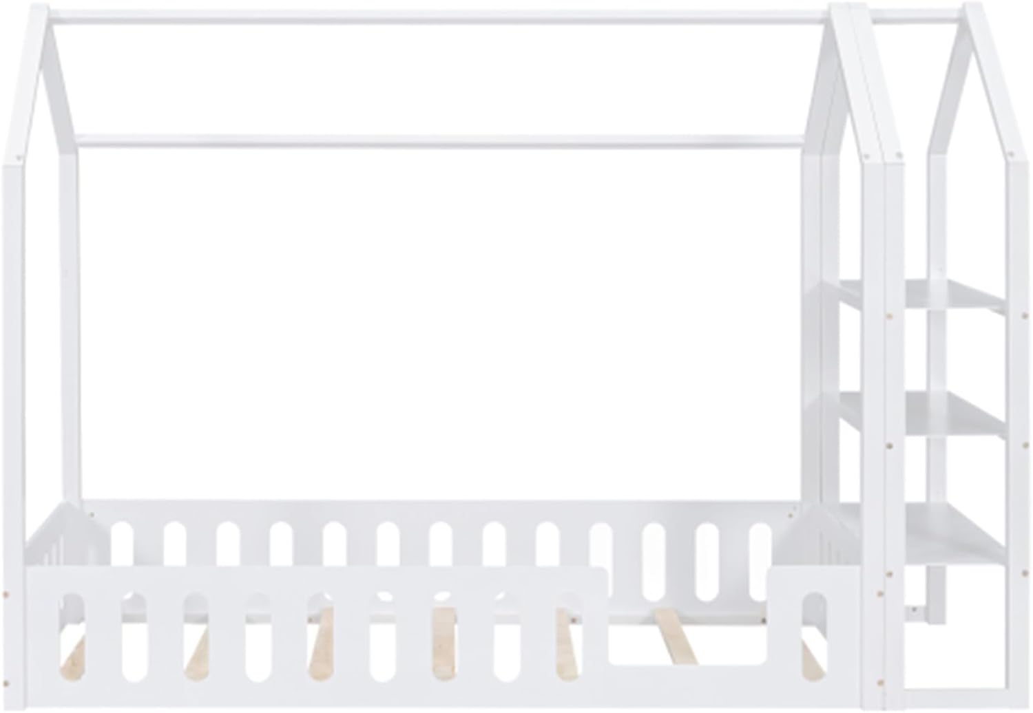 Wooden Simple Double Cabin Bed with Fence, Removable Side Shelf, White