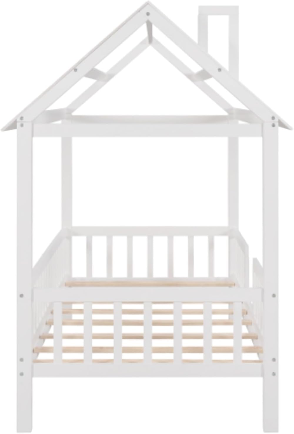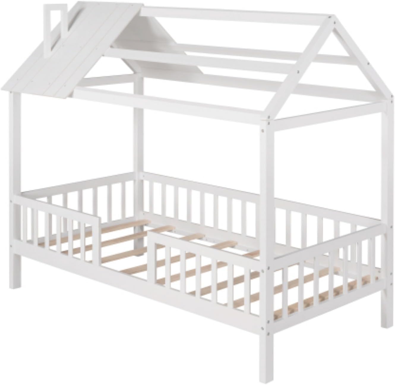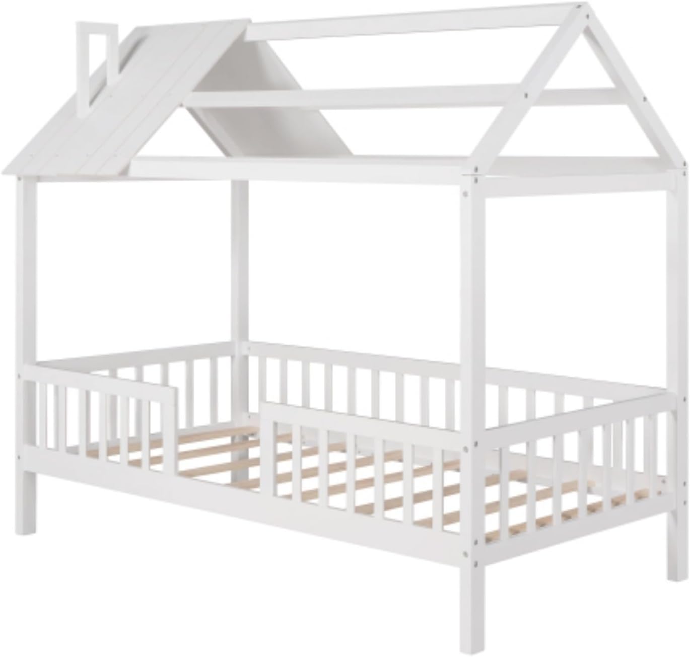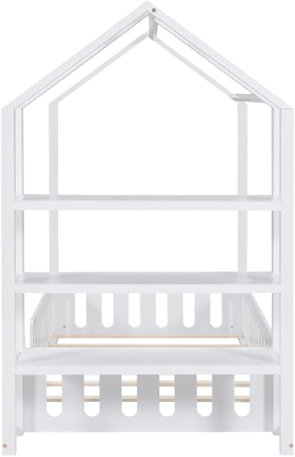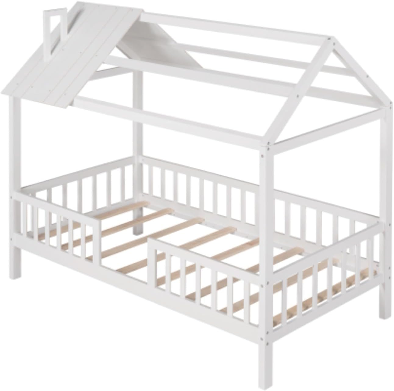Wooden Simple Double Cabin Bed with Fence, Removable Side Shelf, White