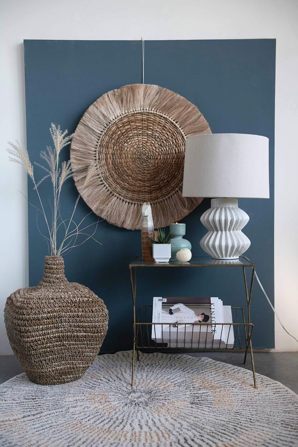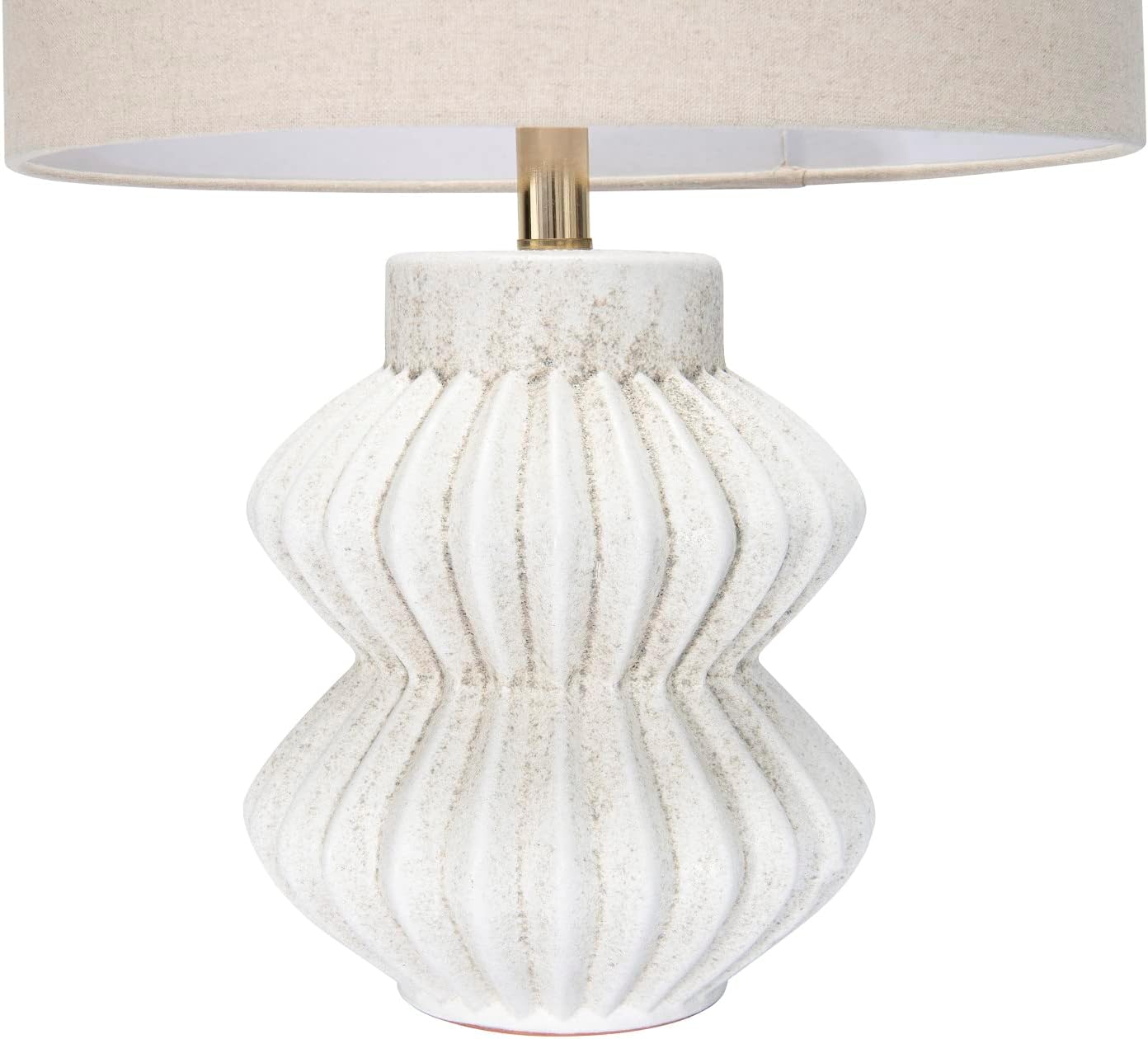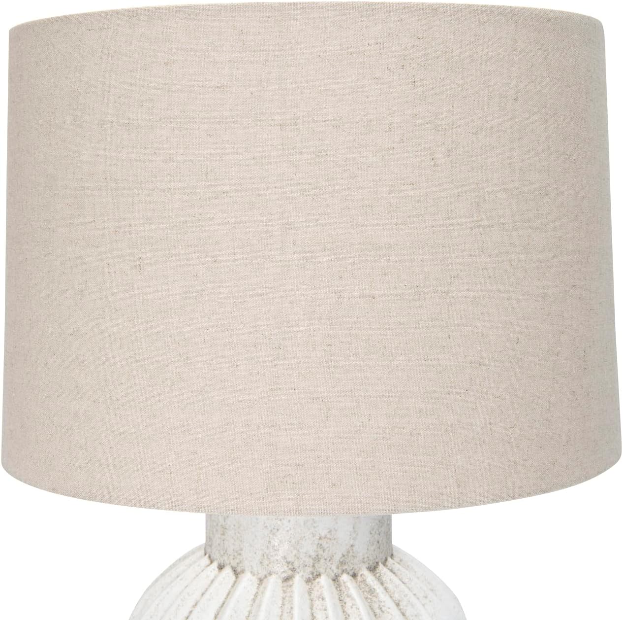 Bloomingville Fluted Terracotta Linen Shade, Distressed White Finish Table Lamp, Grey
