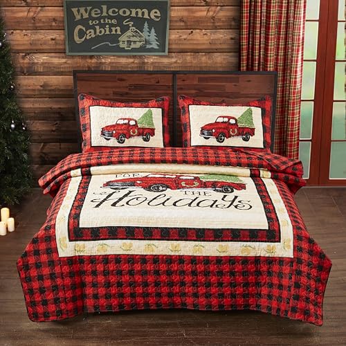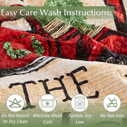 Virah Bella 3 Piece King Lodge Quilt Bedding Set - Rustic Country Reversible Comforter Set with Decorative Pillow Shams - Patchwork Bear
