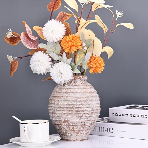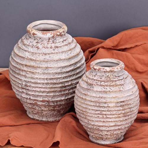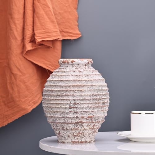 XMGZQ Pottery Barn Vase,Ceramic Rustic Farmhouse Flower Vase,Terra Cotta Decorative Pottery Vintage Terracotta Textured Vases Mantel Shelf Living Room Table Centerpieces for Home Decor