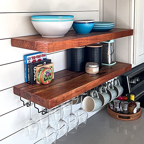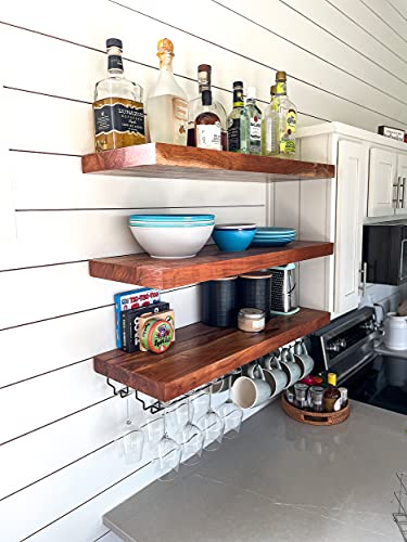 Joel's Antiques | 24 Inch Wide | Floating Shelves for Wall | Made of Natural Wood | Easy Install | Heavy Duty| Perfect for Bathroom Kitchen, Living Room | 10 inches Deep x 2 Inches Thick | Natural