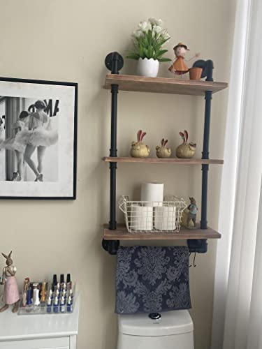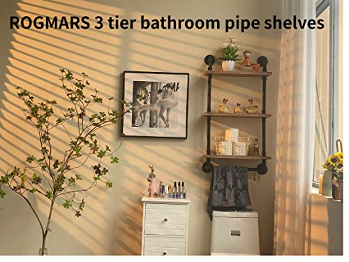 ROGMARS 3-Tier Real Pine Wood Floating Shelf, 20x7.87x41.3in, Industrial Retro Style, Bathroom Wall Shelves, Kitchen Shelves