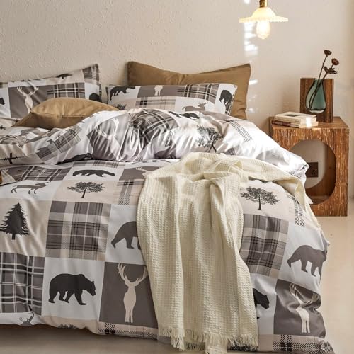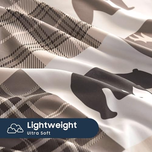 Wake In Cloud - Rustic Comforter Set, Cabin Christmas Lodge Western Country Bear Deer Moose Woodland RV Outdoor Theme, Soft Lightweight Bedding, 3 Pieces, Taupe, Queen Size