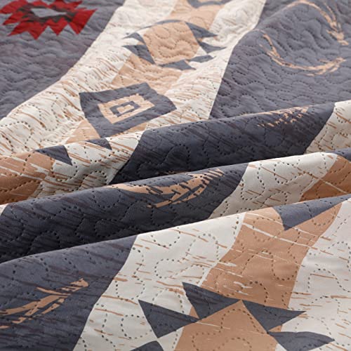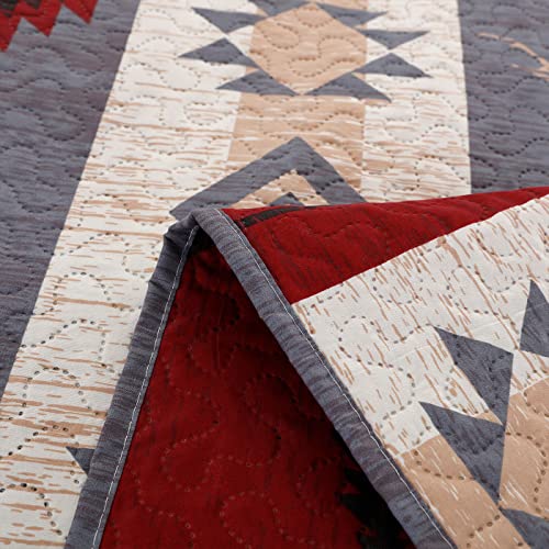 Rustic King Size Quilt Set - Lodge Bedding with Plaid Quilts, Lightweight Reversible Bedspread, and 2 Pillow Shams