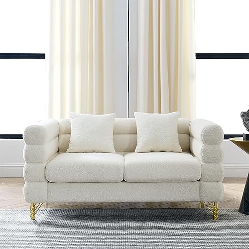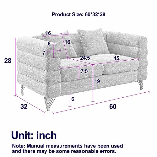 60" W Teddy Green Loveseat Sofa Couch with Firm Strcuture & Thicken Sponge Comfy Love Seat Couches Sleeper for Living Room Bedroom Small Spaces Mid-Century Modern Furniture