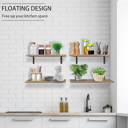 Floating Shelves, Solid Wood Shelves Set of 4, Floating Shelves for Wall Mounted, Durable Natural Bathroom Wall Shelves with Bedroom,Kitchen,Living Room, Corner and Bathroom Decor (Light Brown)