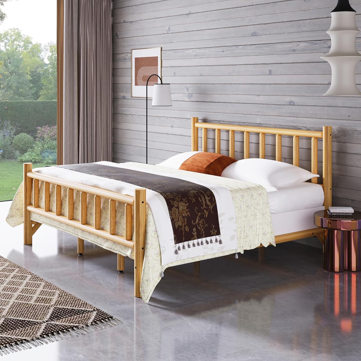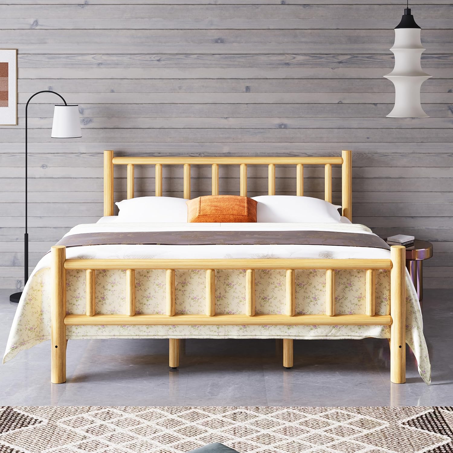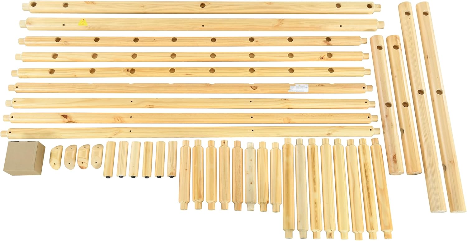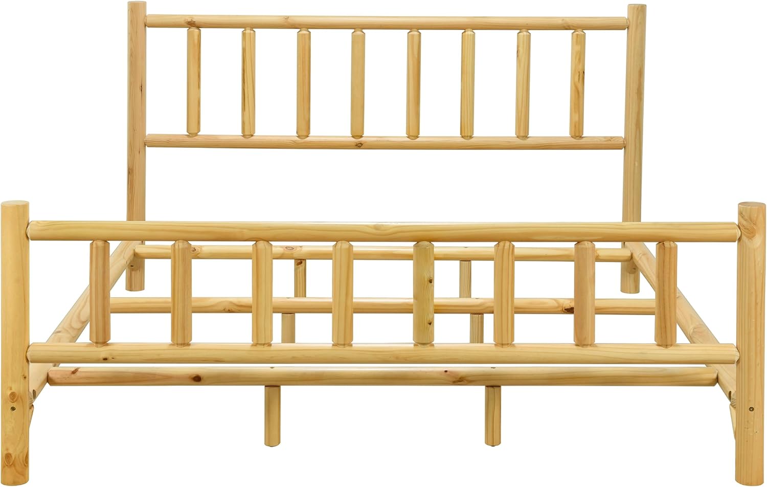 Farmhouse Log Bed Frame King Size, Rustic Style Pure Solid Pine Cylinder Construction, Natural Finish, Fits Mattresses and Box Springs