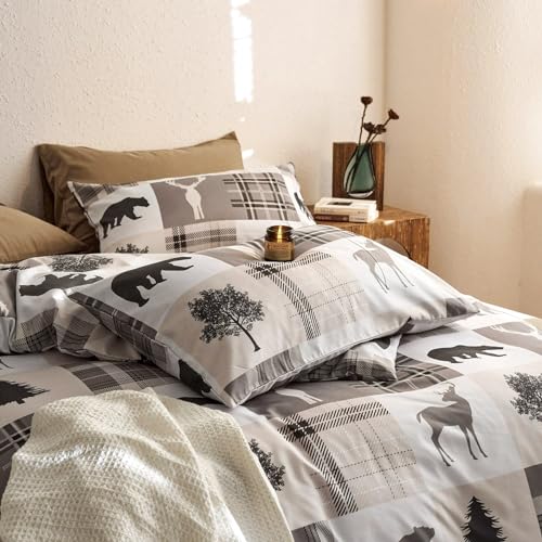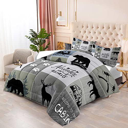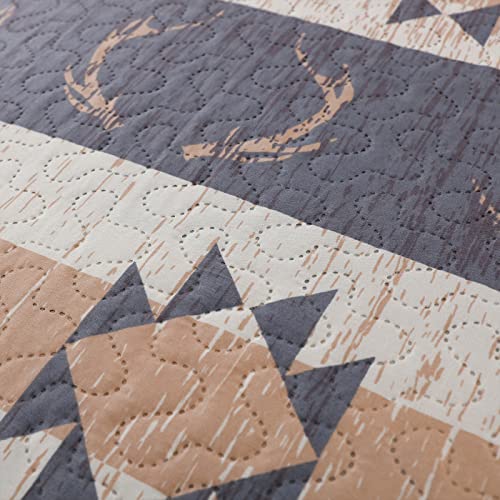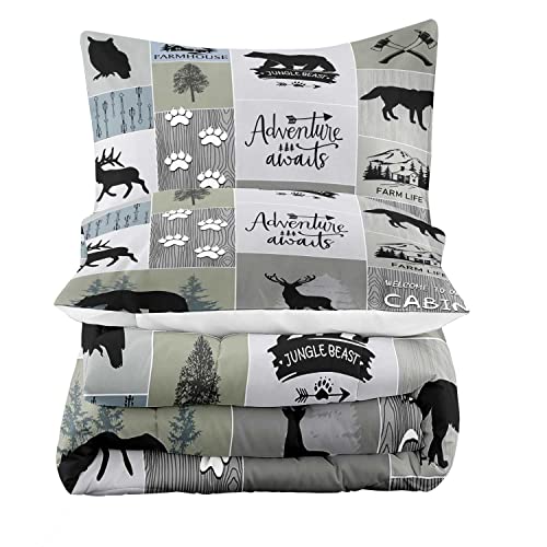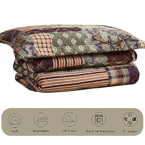 Lodge Bedding Set Twin Size Rustic Cabin Quilts Pine Tree Moose Bear Bedspread Cottage Coverlet with Sham Lightweight Soft All Season Bed Set, 1 Quilt 2 Pillow Shams