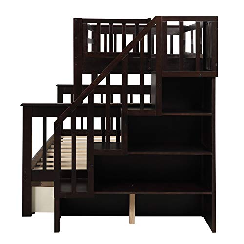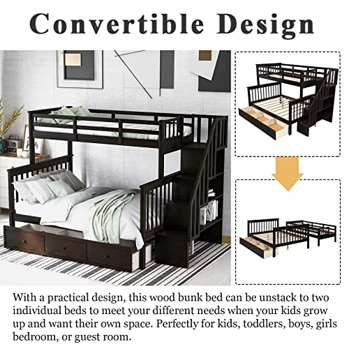 CITYLIGHT Bunk Beds Twin Over Full Size with Stairs, Wooden Bunk Beds with Storage Open Shelves, Stairway Bunk Bed Convertible to 2 Separated Beds,Kids Bunk Beds for Bedroom, Dorm,White