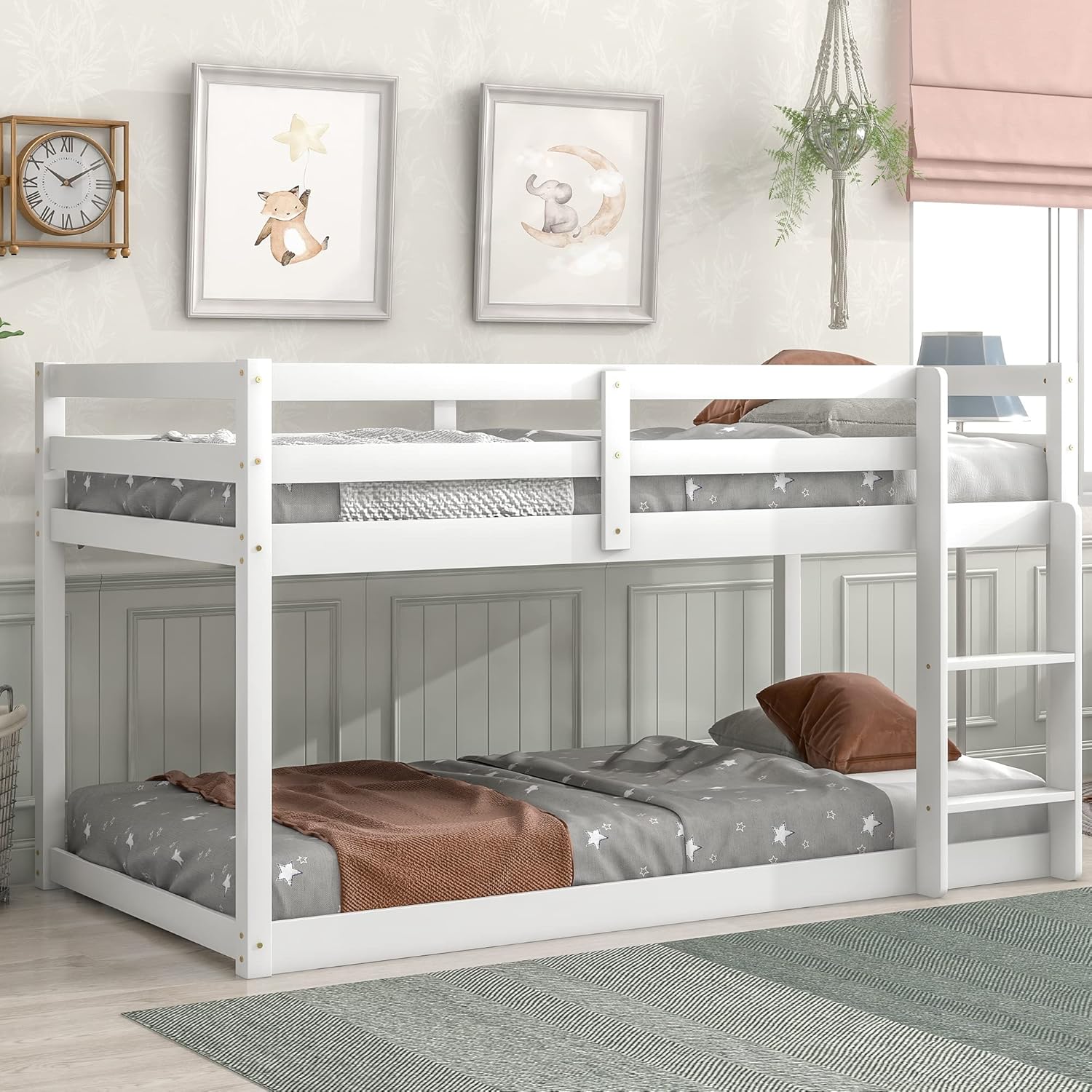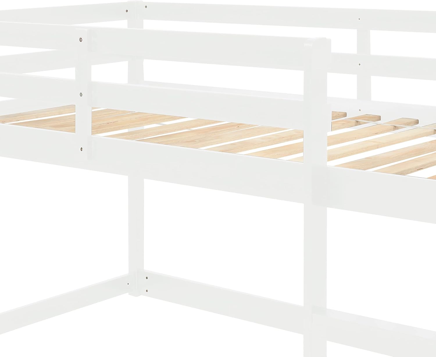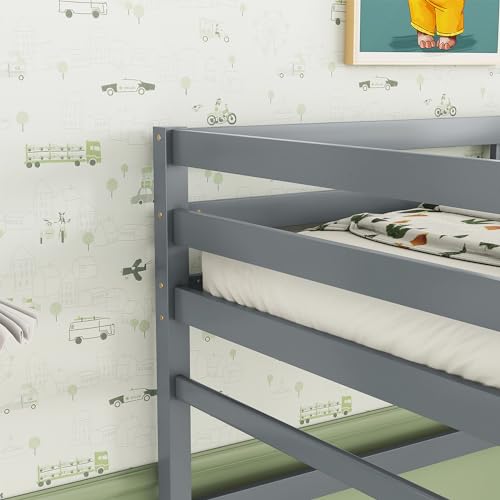 Twin Over Twin Loft Bed Wooden Bed Frame with Safety Guardrail and Ladder, for Kids Teens Boys Girls, White
