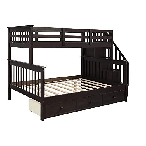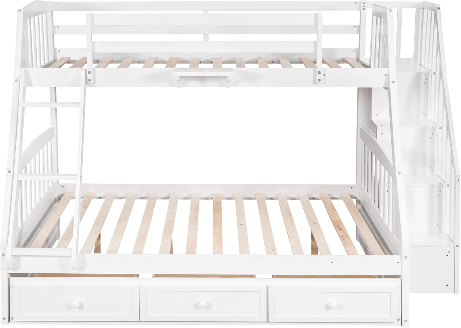Stairway Twin Over Full Bunk Bed with Storage Drawers, Staircase and Ladder, Wooden Bunkbed Convertible into 2Beds for Kids/Teens/Adults Bedroom, White