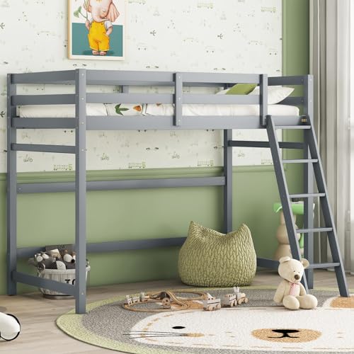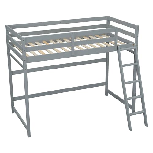 Wooden Twin Loft Bed Frame, High Loft Bed Frame Twin Wooden Loft Bed for Kids, Junior, Teens, Adults Single Bed, Easy Assembly, Space-Saving Design, No Box Spring Needed (White)