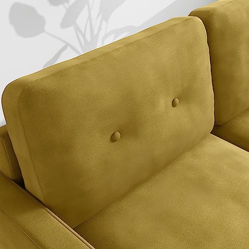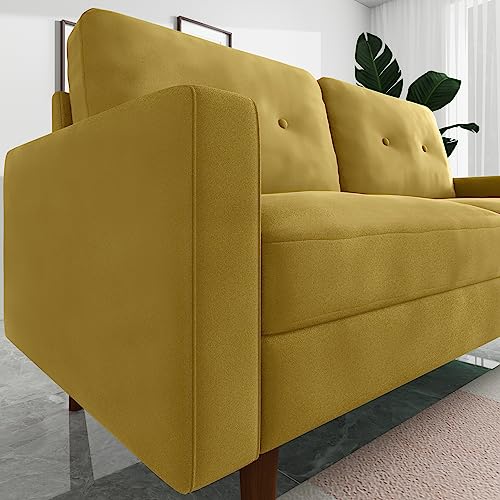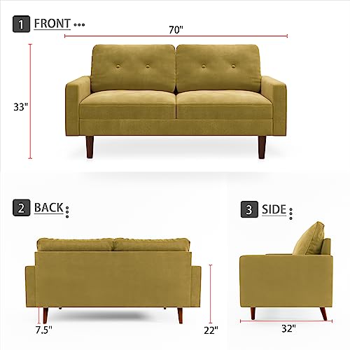 Small Velvet Loveseat, Mid-Century Modern Love Seat, Small Spaces Loveseats, Sofa Couch for Living Room Bedroom Office, Square Arms, Solid Wood Legs (70" Olive Green)