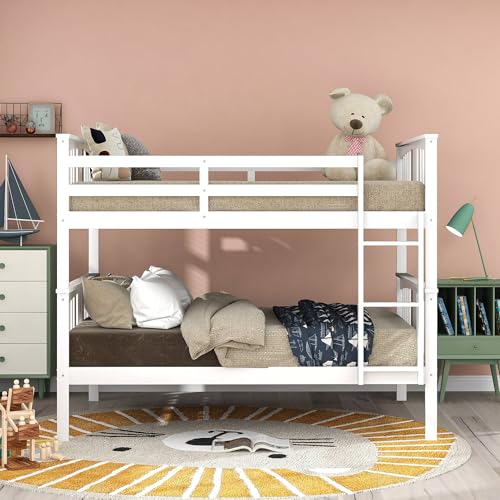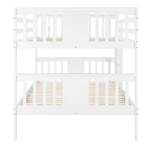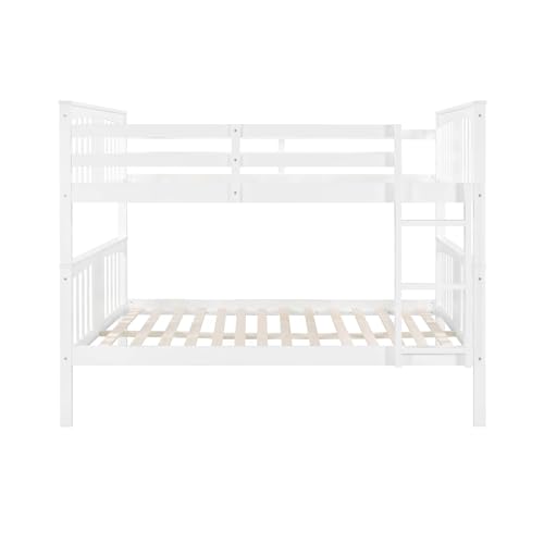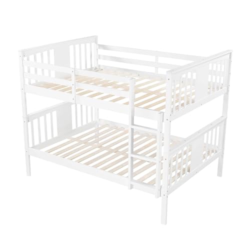 Full over Full Wooden Bunk Bed with Ladder for Bedroom, Guest Room Furniture (White)